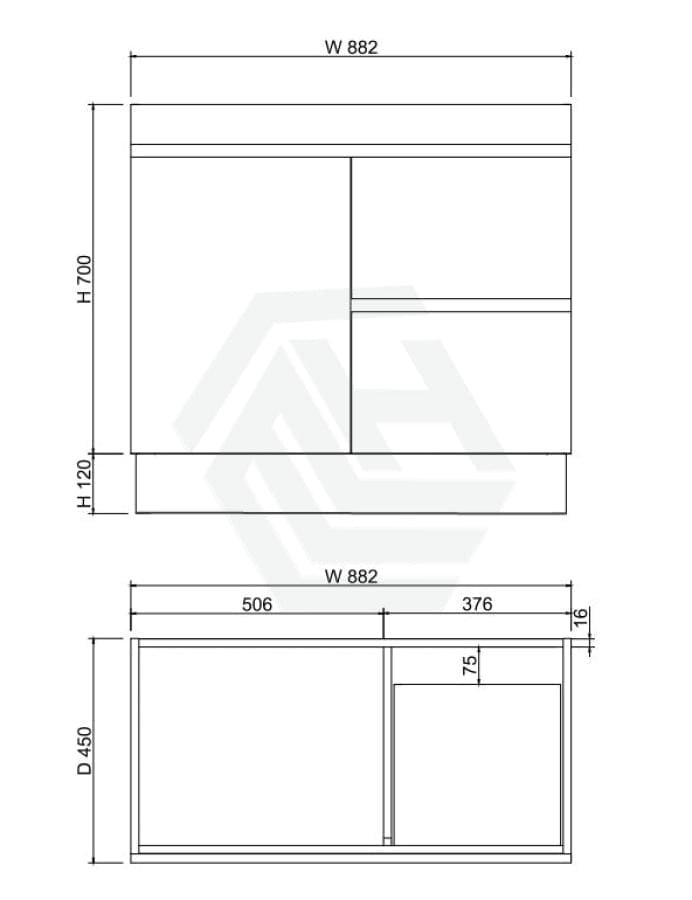 Ceramic Top (Optional) | MCRM Ceramic Top (Single bowl with 1 tap hole, 1 overflow hole; Double bowls with 2 tap holes, 2 overflow holes) |