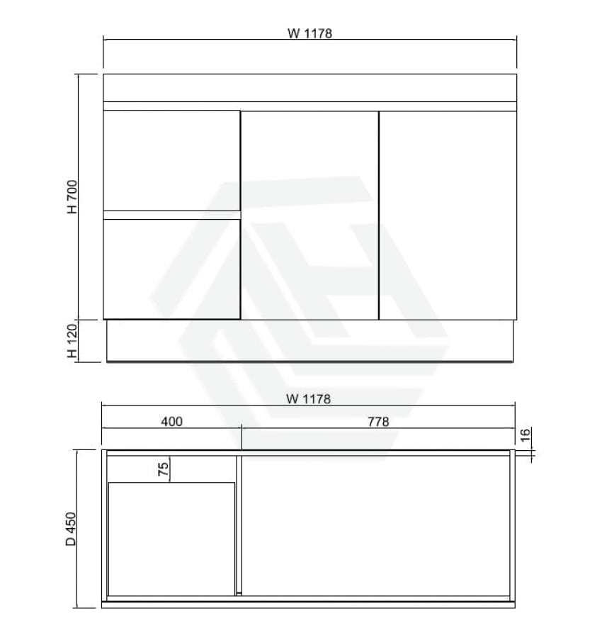 Dimension | ABS-MFL2-600-KB (590x450x820mm) ABS-MFL2-750L-KB (735x450x820mm, Left drawer) ABS-MFL2-750R-KB(735x450x820mm, Right drawer) ABS-MFL2-900L-KB(882x450x820mm, Left drawer) ABS-MFL2-900R-KB(882x450x820mm, Right drawer) ABS-MFL2-1200L-KB(1178x450x820mm, Left drawer, Single bowl) ABS-MFL2-1200R-KB (1178x450x820mm, Right drawer, Single bowl) ABS-MFL2-1200D-KB(1178x450x820mm, Double bowls) ABS-MFL2-1500-KB(1477x450x820mm, Single/double bowls) |