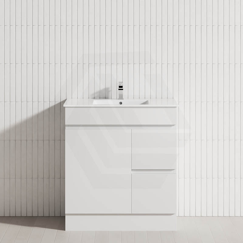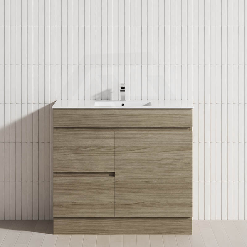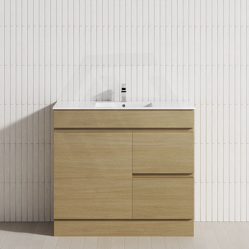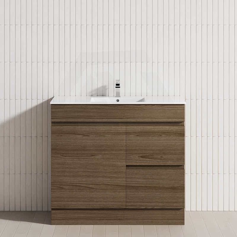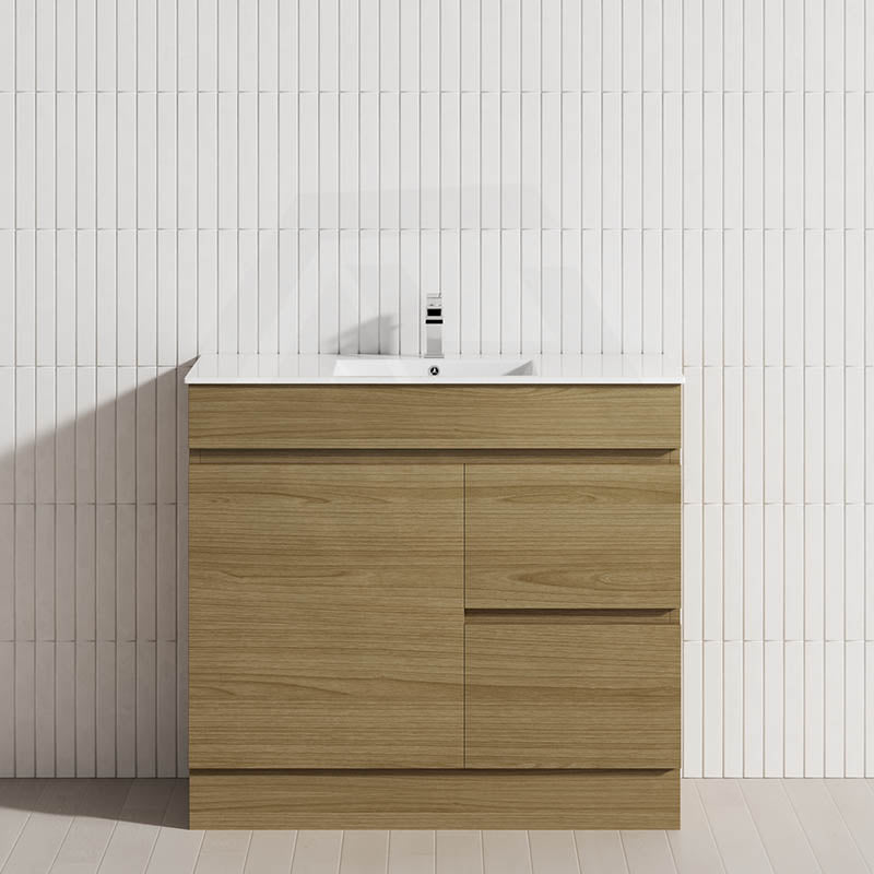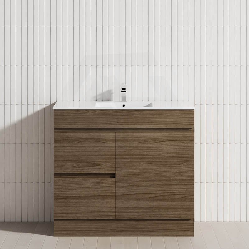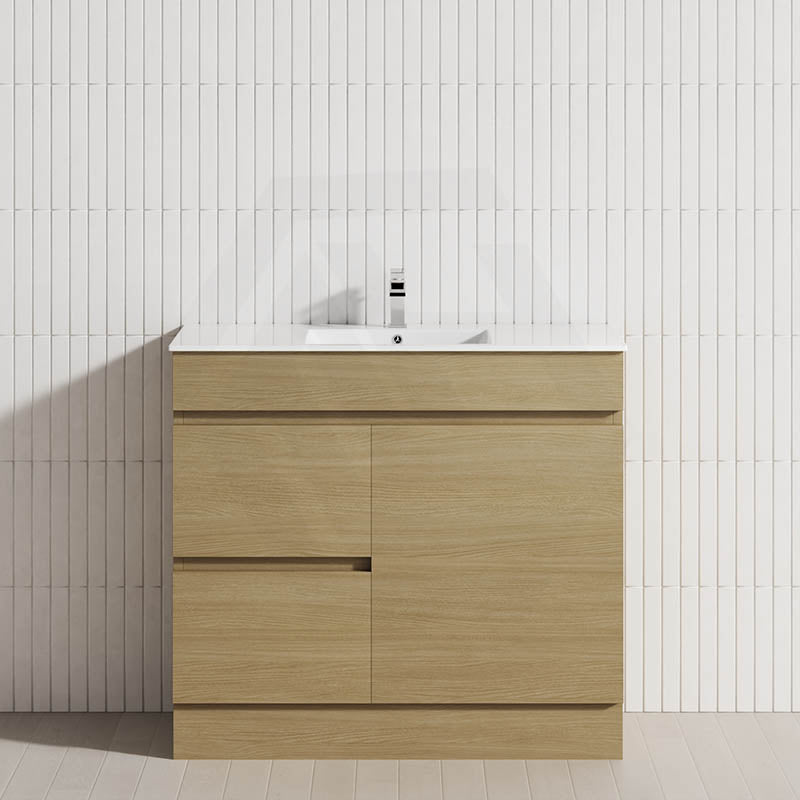 The Left/Right 2-Drawer 1-Door 750/900/1200mm Freestanding Bathroom Vanity, with Kickboard, Single Bowl Multi-Colour Cabinet Only brings comfort and function together in the bathroom, equipped with a soft closing design.