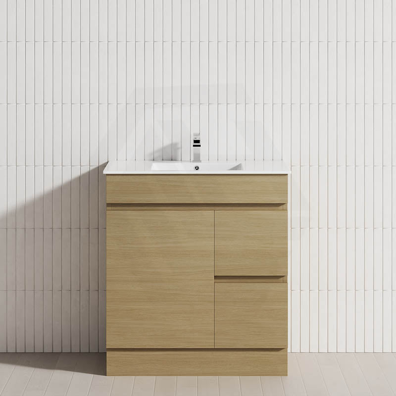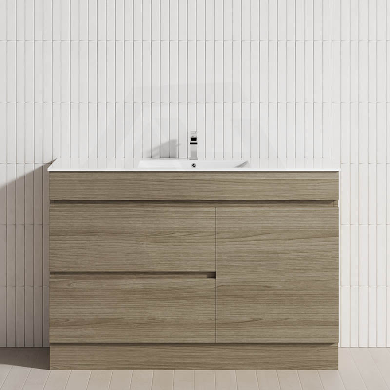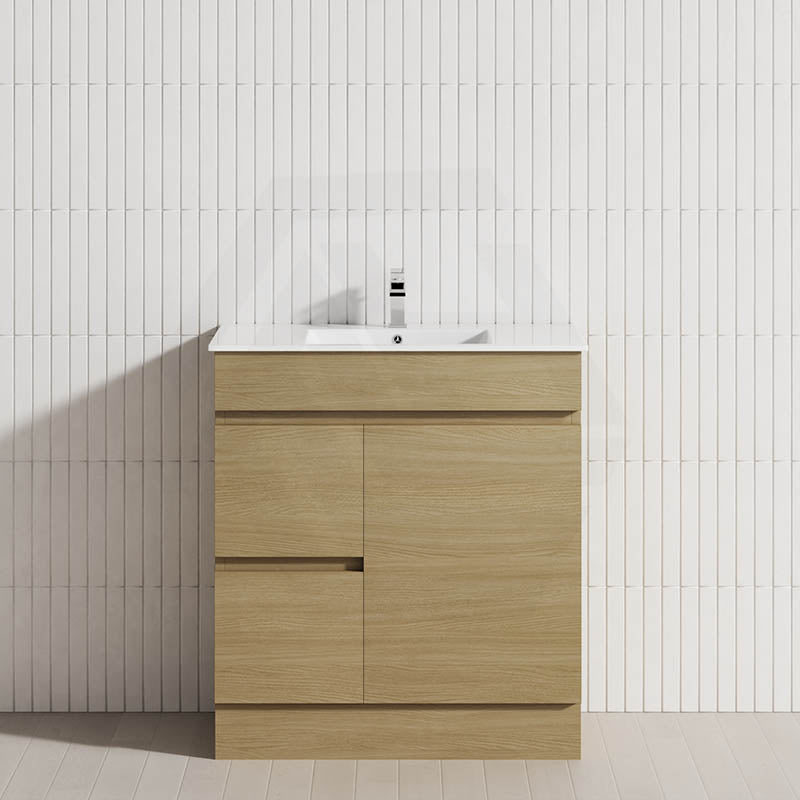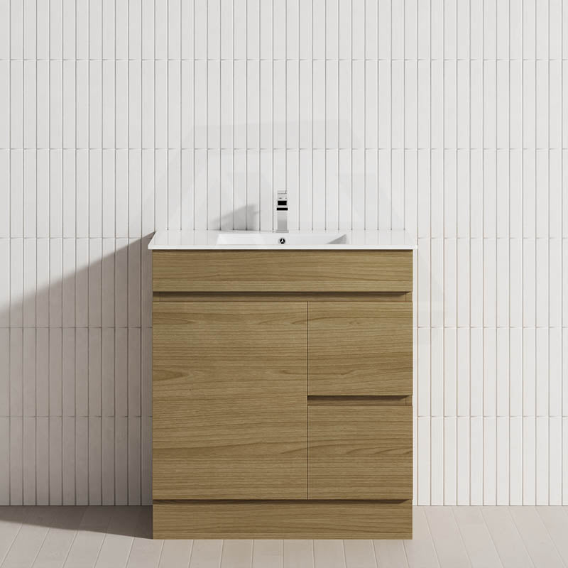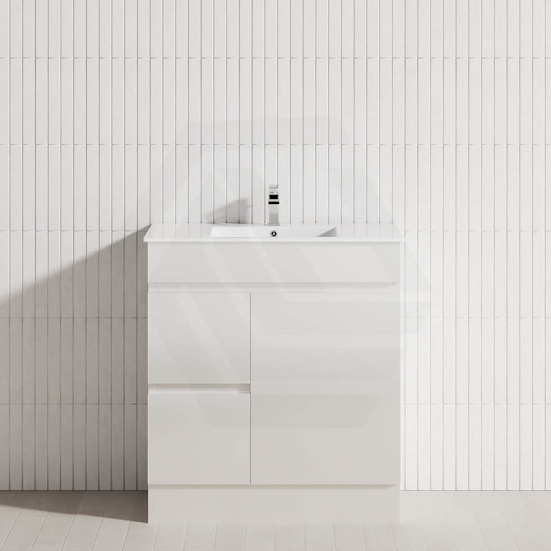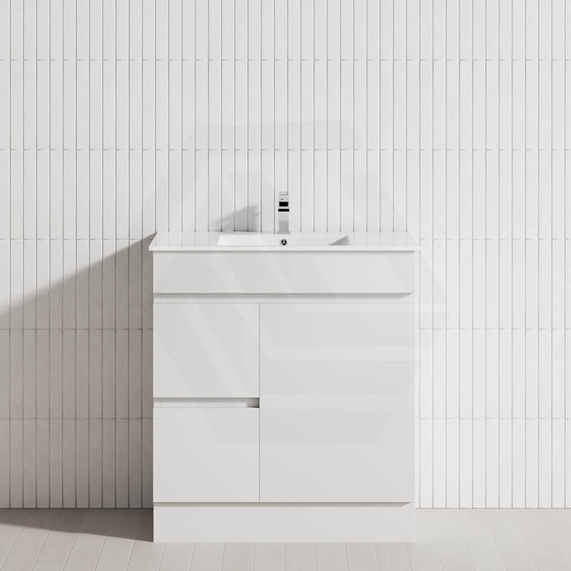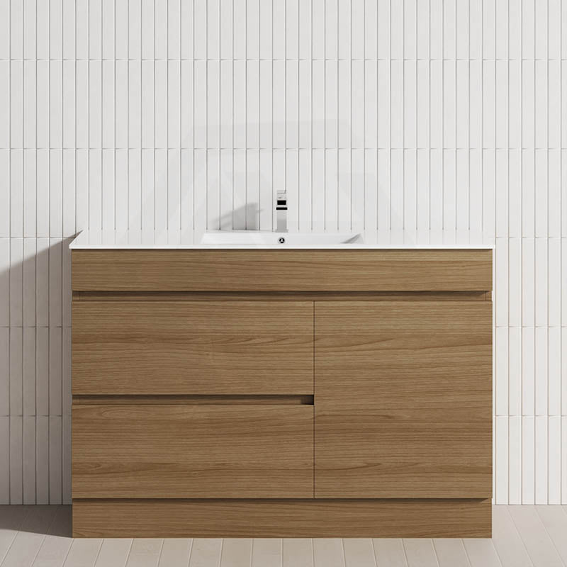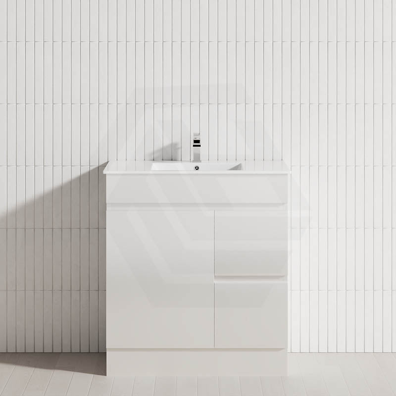 The Left/Right 2-Drawer 1-Door 750/900/1200mm Freestanding Bathroom Vanity, with Kickboard, Single Bowl Multi-Colour Cabinet Only brings comfort and function together in the bathroom, equipped with a soft closing design.