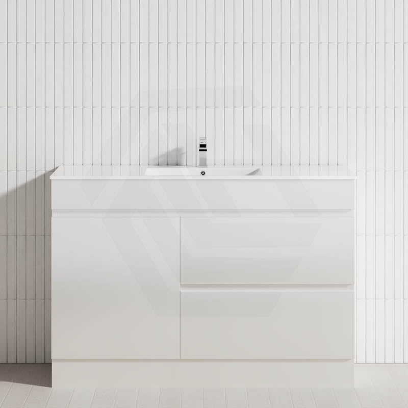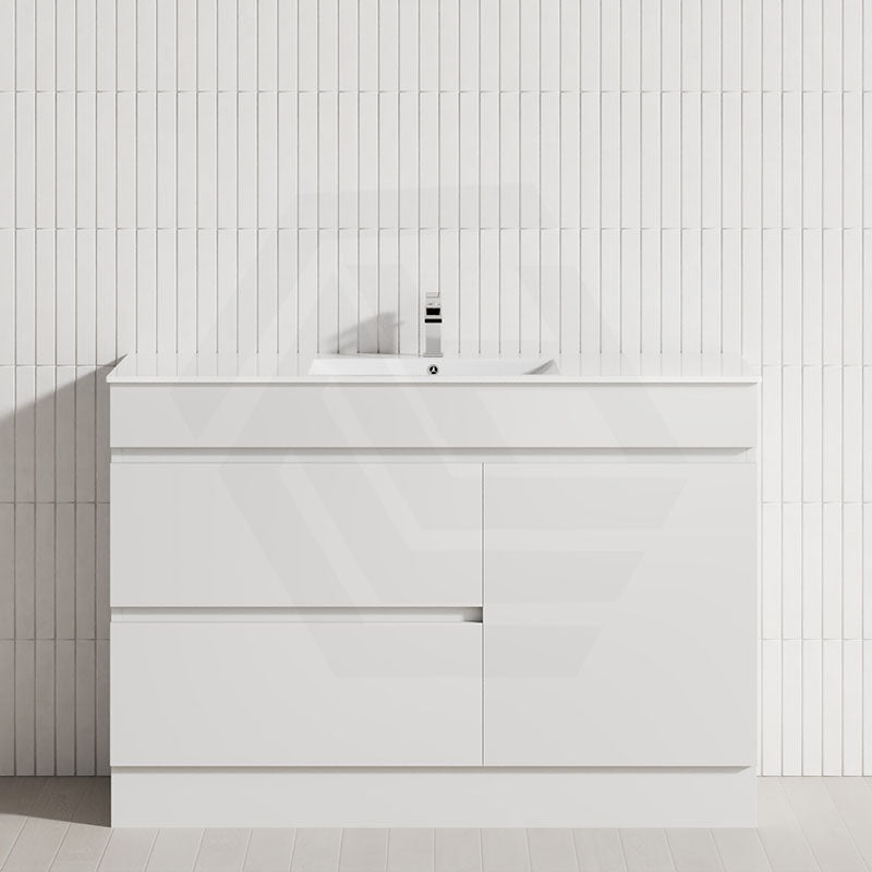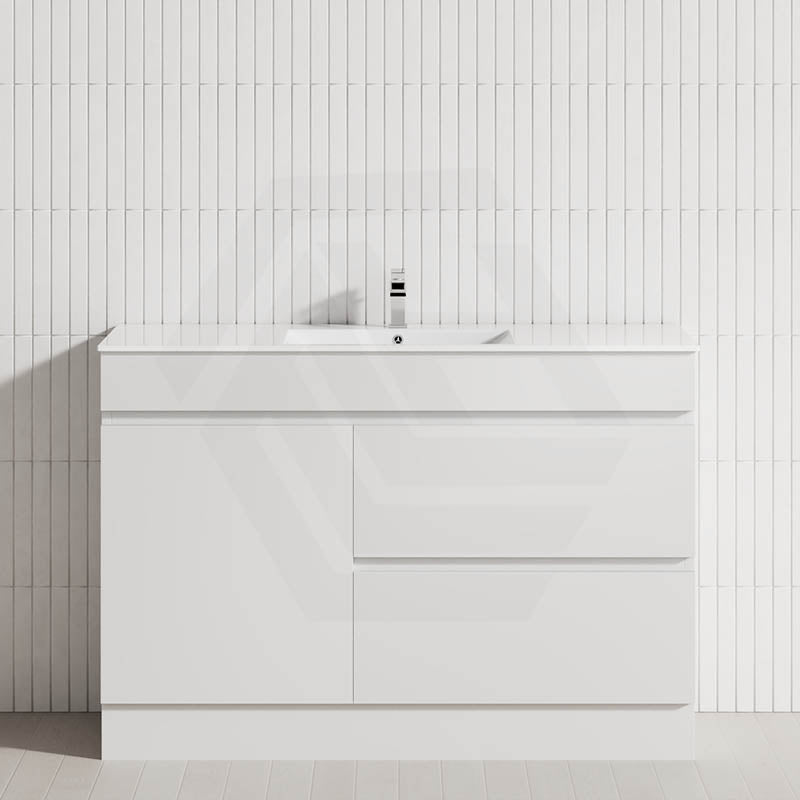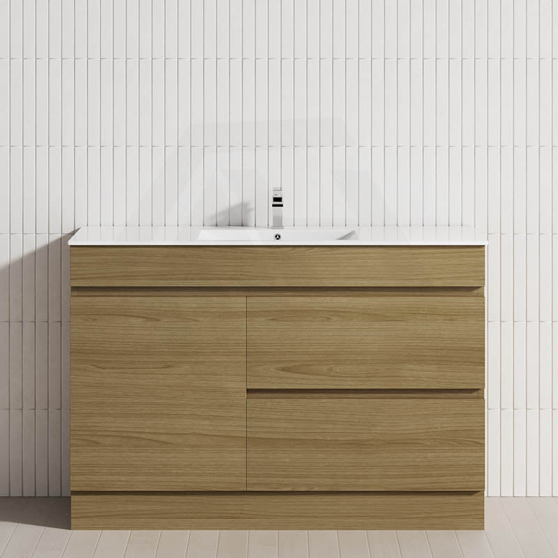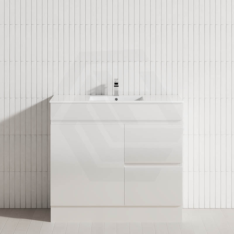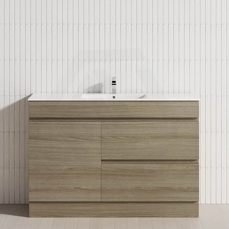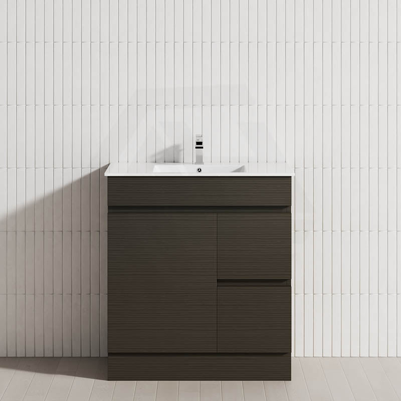 The Left/Right 2-Drawer 1-Door 750/900/1200mm Freestanding Bathroom Vanity, with Kickboard, Single Bowl Multi-Colour Cabinet Only brings comfort and function together in the bathroom, equipped with a soft closing design.