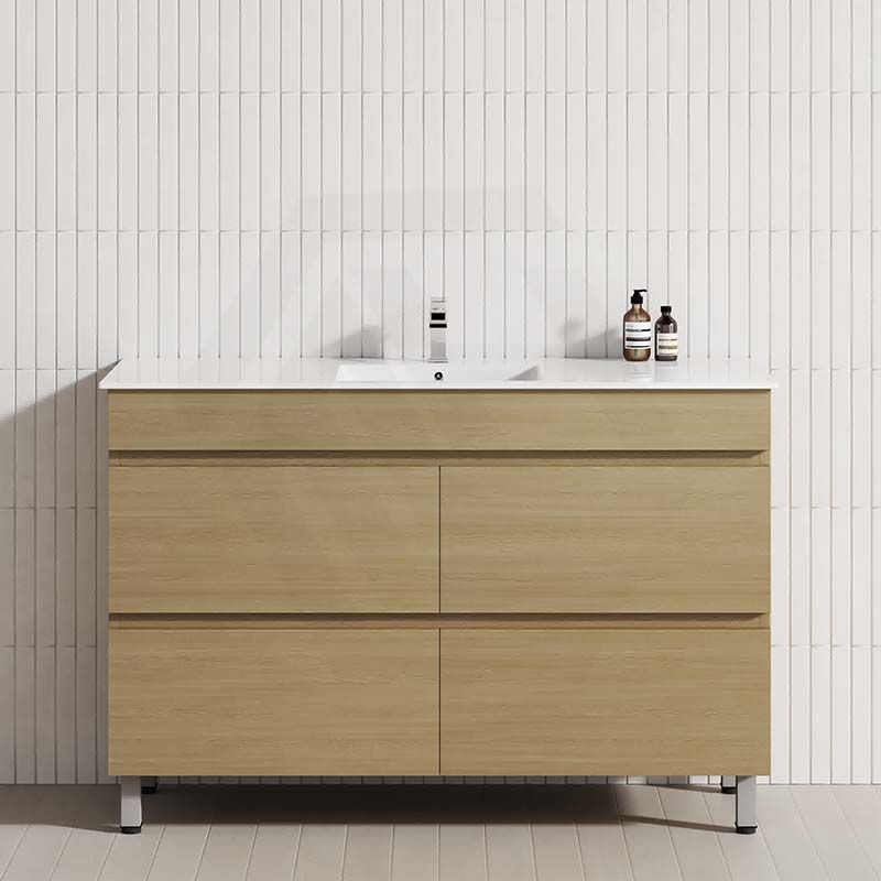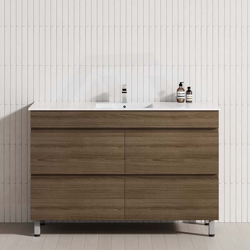 The 1200/1500/1800mm 4-Drawer Bathroom Freestanding Leg Vanity Single/Double Bowls Multi-Colour Cabinet Only brings comfort and function together in the bathroom, equipped with a soft closing design.