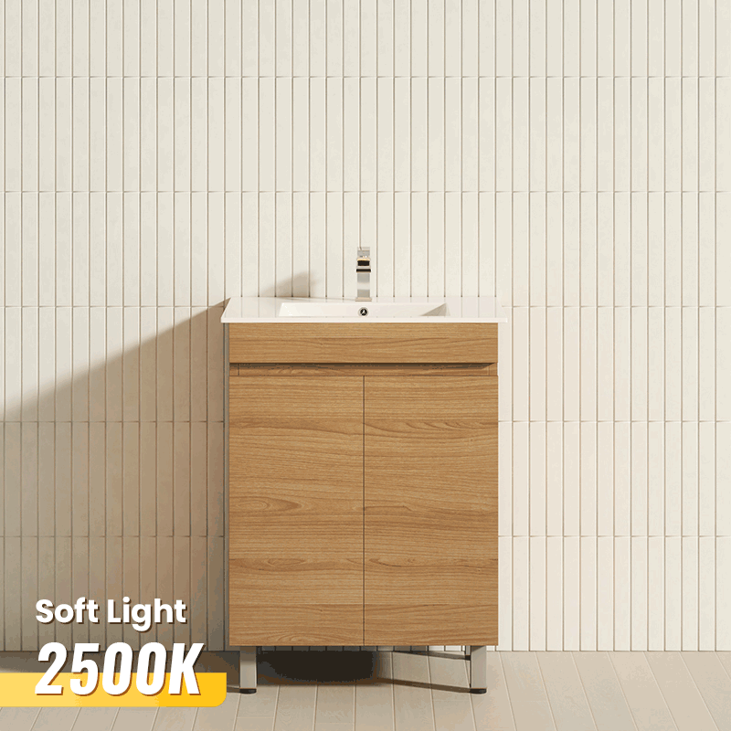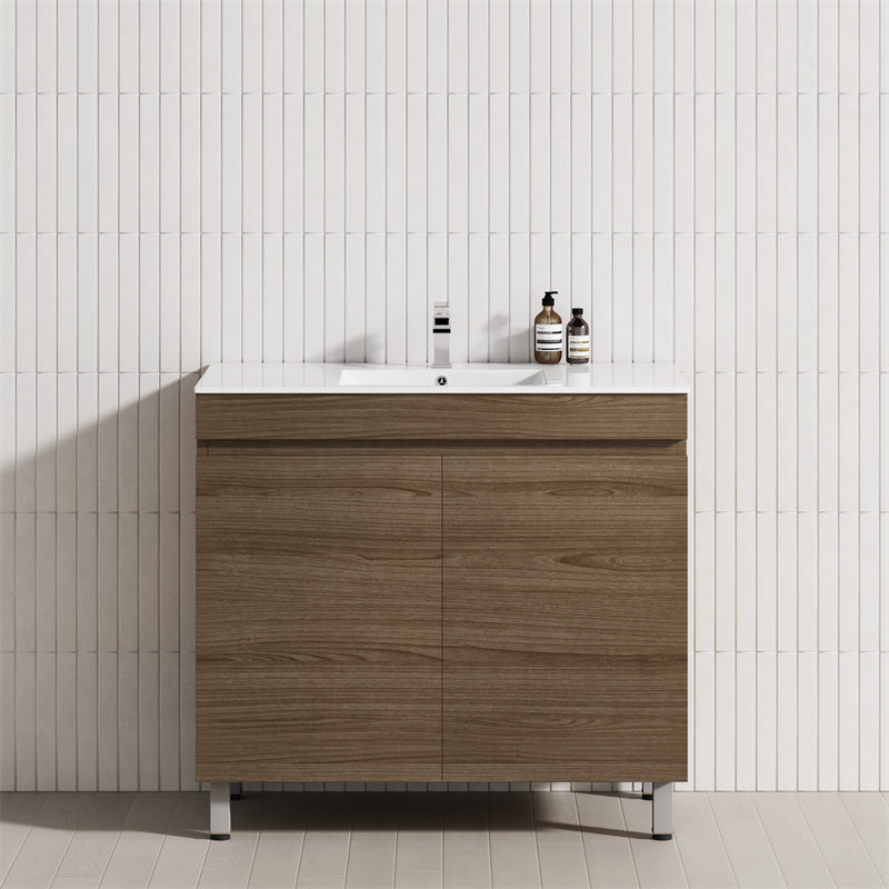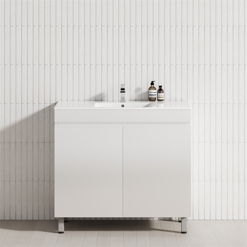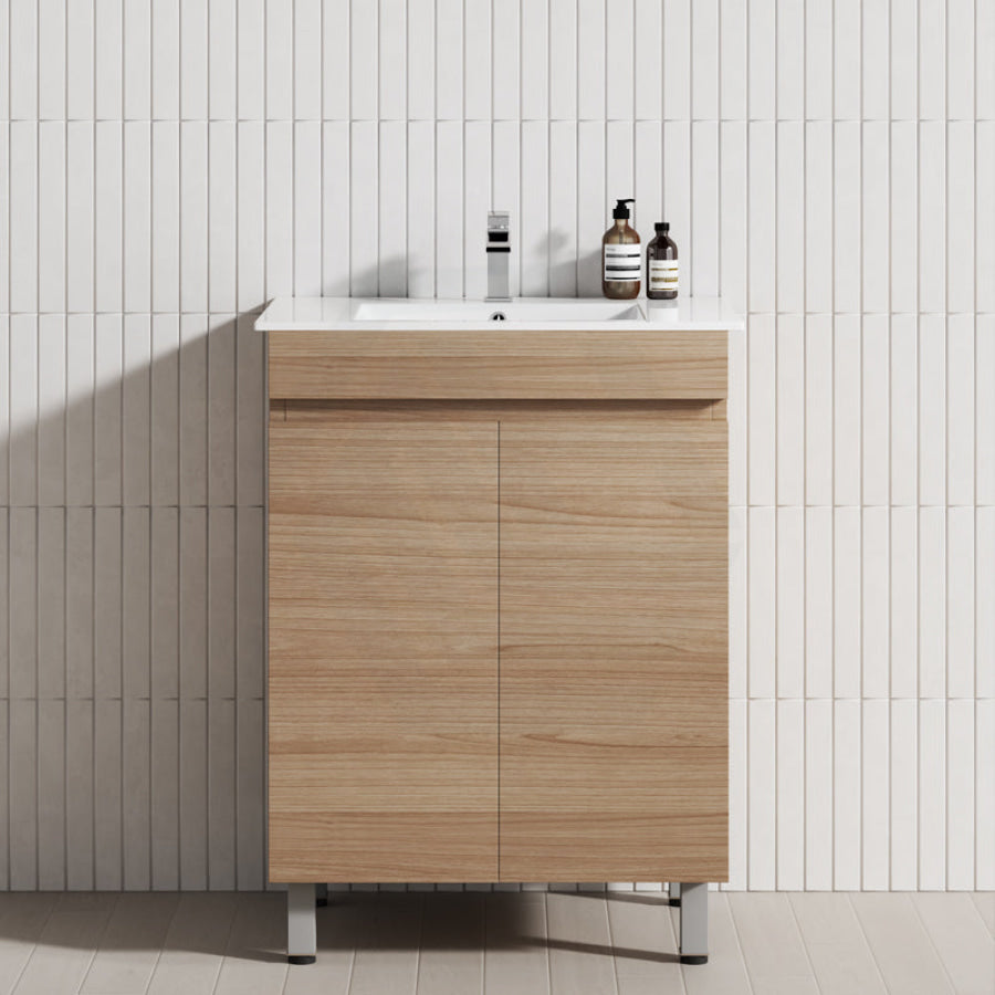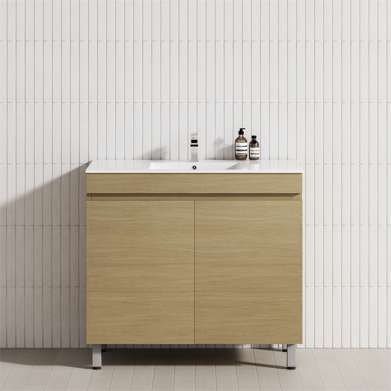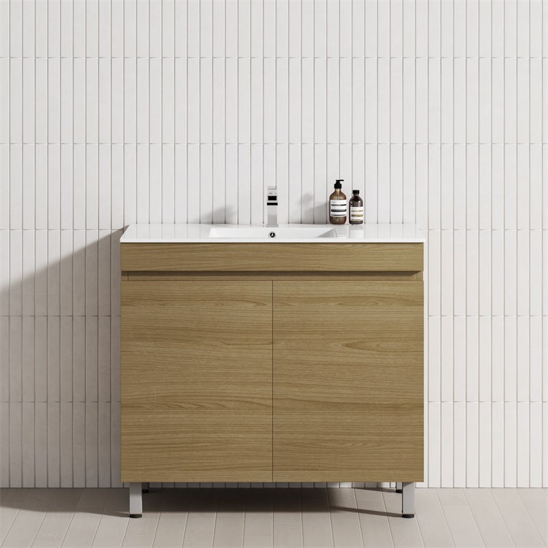 The 600/750/900mm Freestanding Bathroom Vanity with Legs 2-Door Multi-Colour Cabinet Only brings comfort and function together in the bathroom, equipped with a soft closing design.