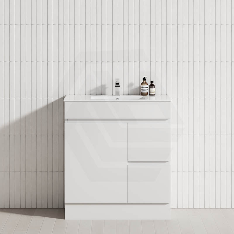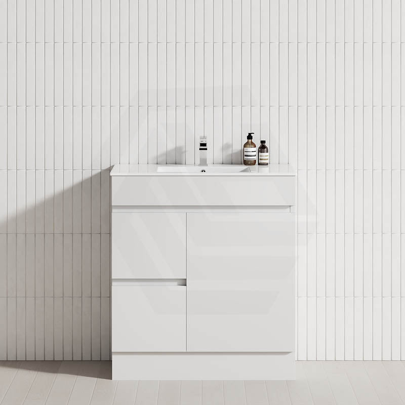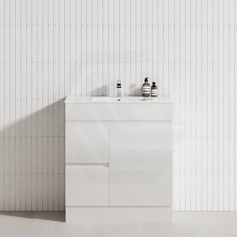 The Narrow 2-Drawer 1-Door 750mm Freestanding Bathroom Vanity Kickboard Single Multi-Colour Cabinet brings comfort and function together in the bathroom, equipped with a soft closing design.