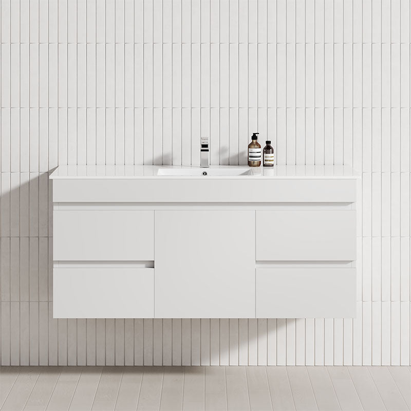 4-Drawer 1-Door 1200mm Wall Hung Bathroom Floating Vanity Single Bowl Multi-Colour Cabinet Only