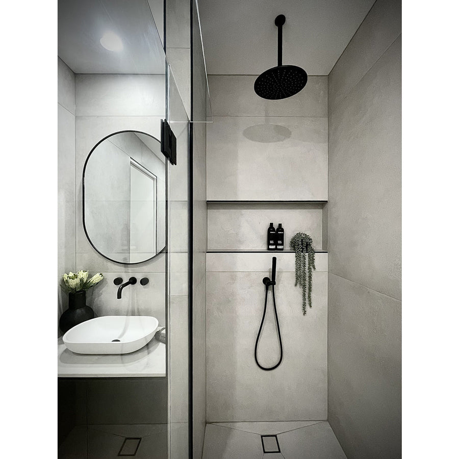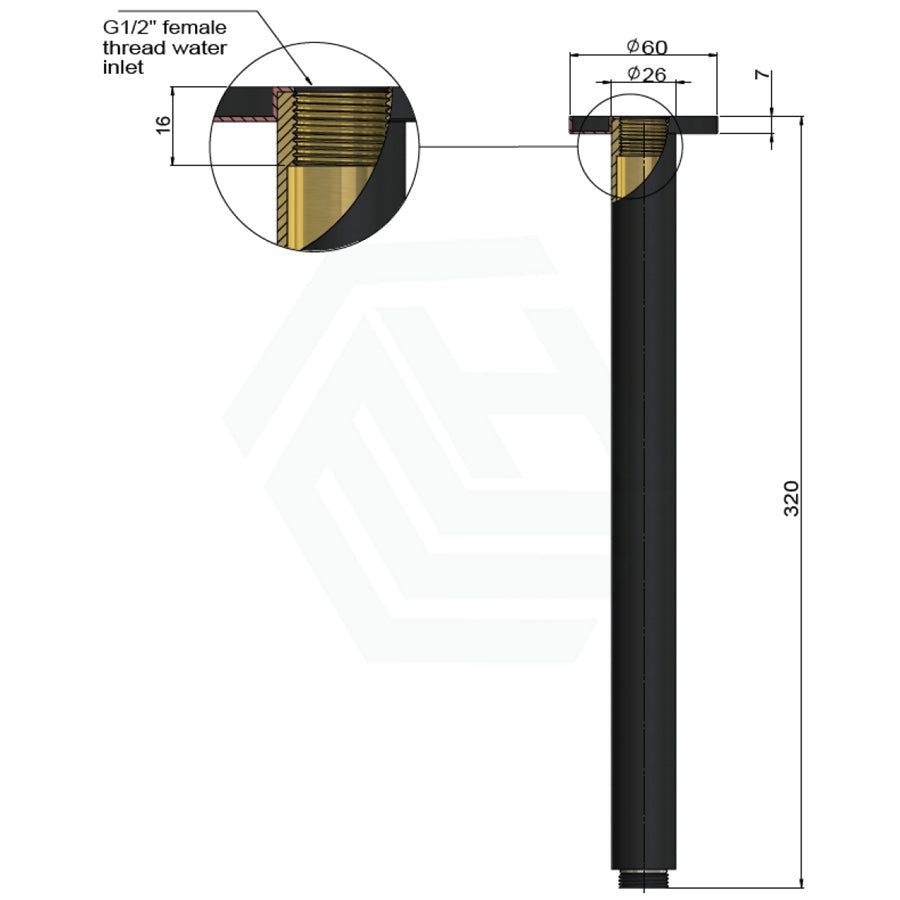 The Round Ceiling Arm is made from solid brass and drops 300mm, connecting to a beautiful round rainfall shower head finished in a Electroplated coating.
