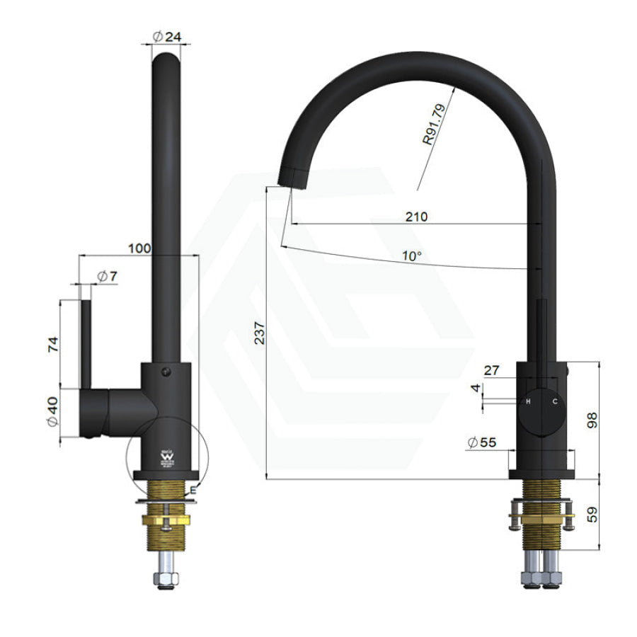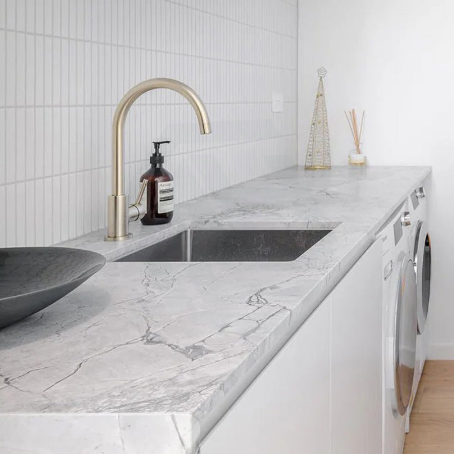 This mixer can be installed into benchtops that are up to 45mm in thickness.
