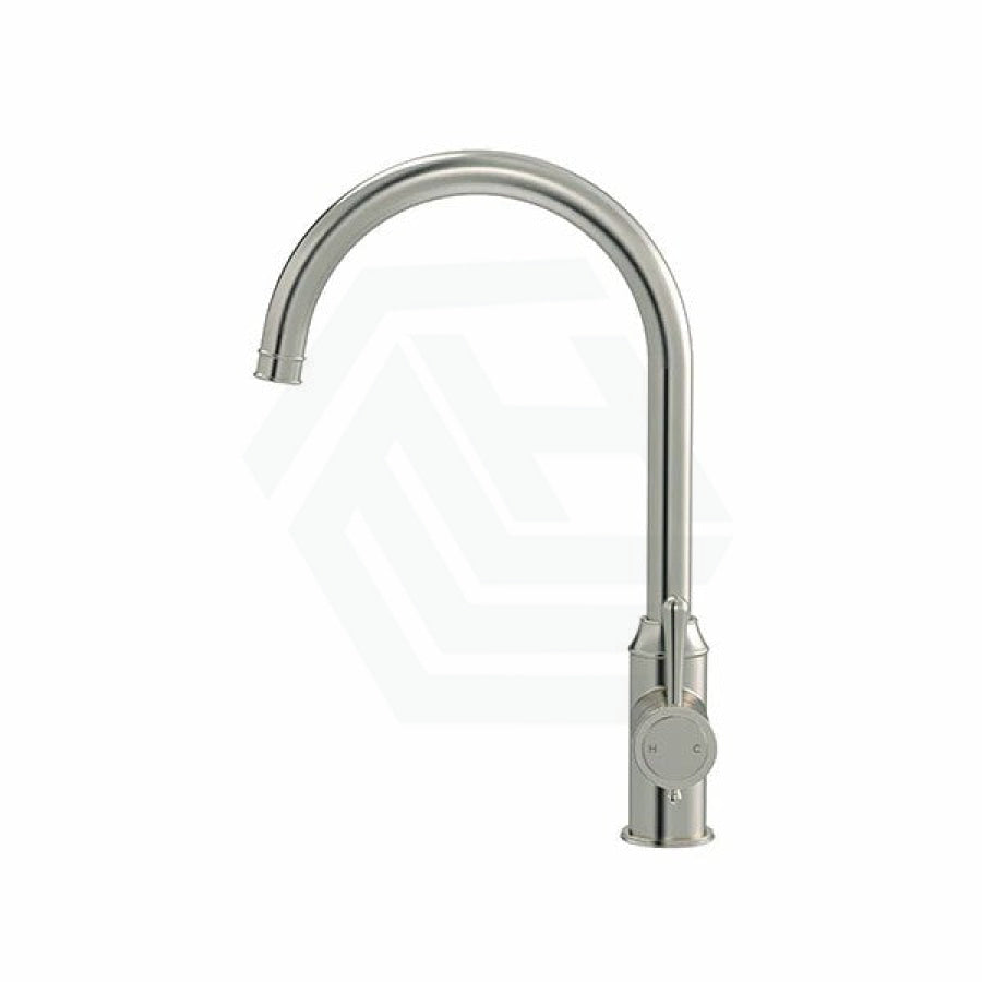 N#3(Nickel) Meir Harrington Round Gooseneck Kitchen Mixer Tap with 360 Degree Swivel Spout PVD Brushed Nickel