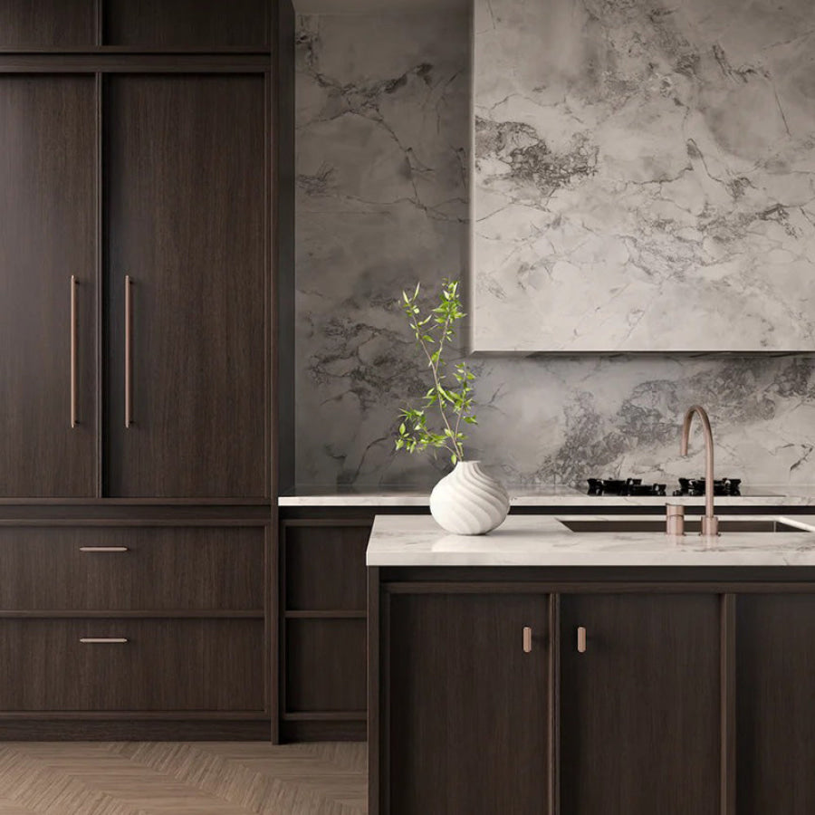 The ÖPPEN range of cabinet handles by Meir embodies Scandinavian simplicity and elegance, introducing a minimalistic design to any space featuring cabinetry.