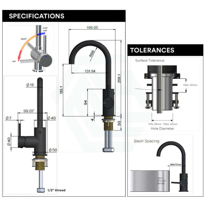 Meir Round Gooseneck Basin Mixer with Cold Start Variant Colour Available