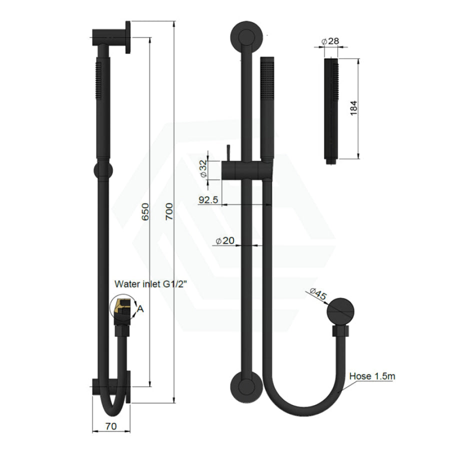 Introducing the Meir Round Hand Shower on Rail Column Variant, available in multiple colors. Enjoy a luxurious and customizable shower experience with this sleek and modern hand shower, designed for optimal water flow and pressure. Upgrade your shower routine now.