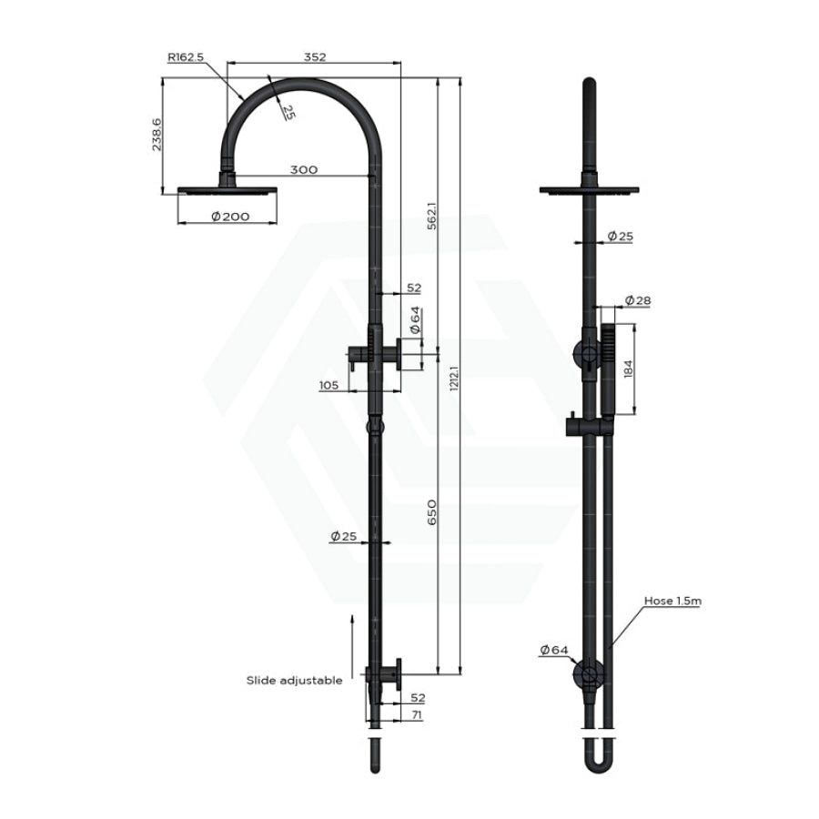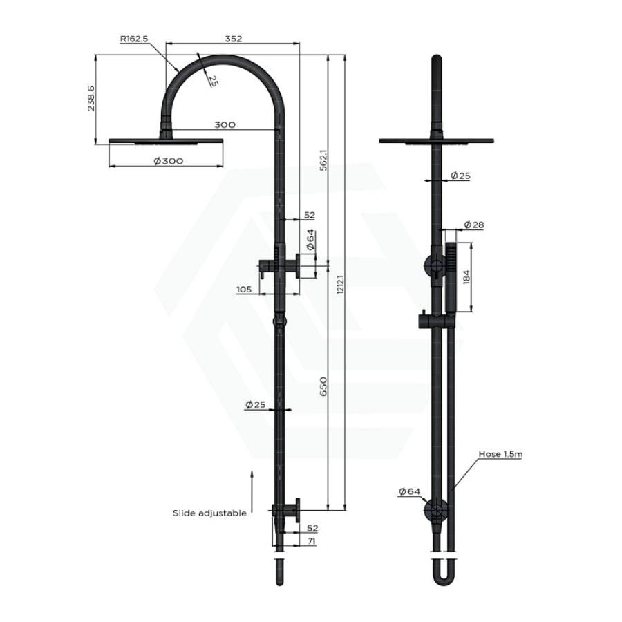 - 1 x 200/300mm Overhead Shower Set with Handheld