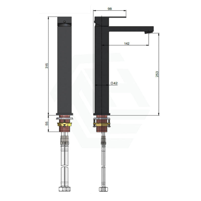 An absolutely striking mixer tap which adds a bold statement to any basin or vanity unit. With precision engineering and a European ceramic cartridge, perfect control of water flow and temperature is made easy. The additional height is perfect for above-counter basins and sinks. Ideal for stone or concrete applications.