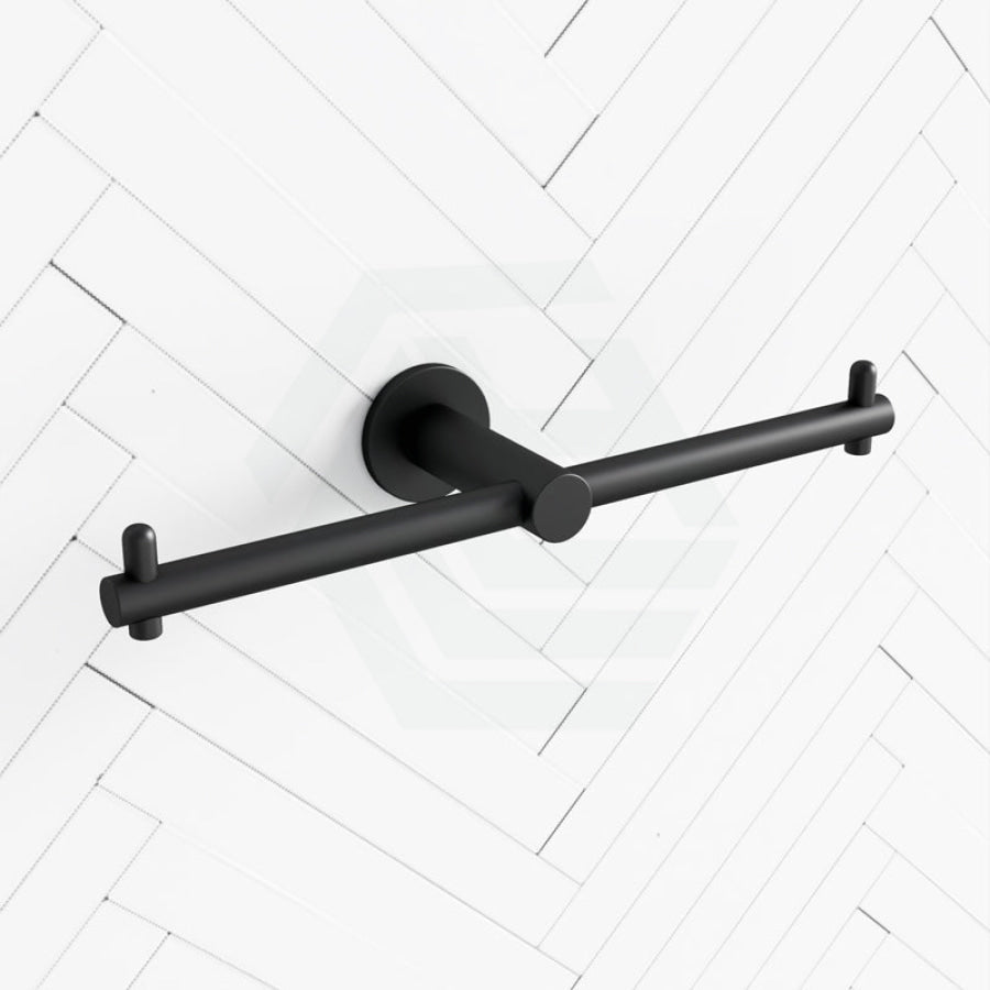 Metlam Double Toilet Roll Holder Designer Black 279mm Solid Horizontal Bars