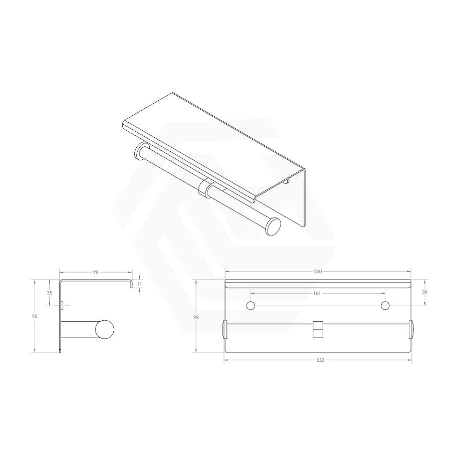 The Double Toilet Roll Holder with Shelf Top combines practicality with modern aesthetics in a designer black finish, featuring a single toilet roll holder with an integrated shelf for added convenience.