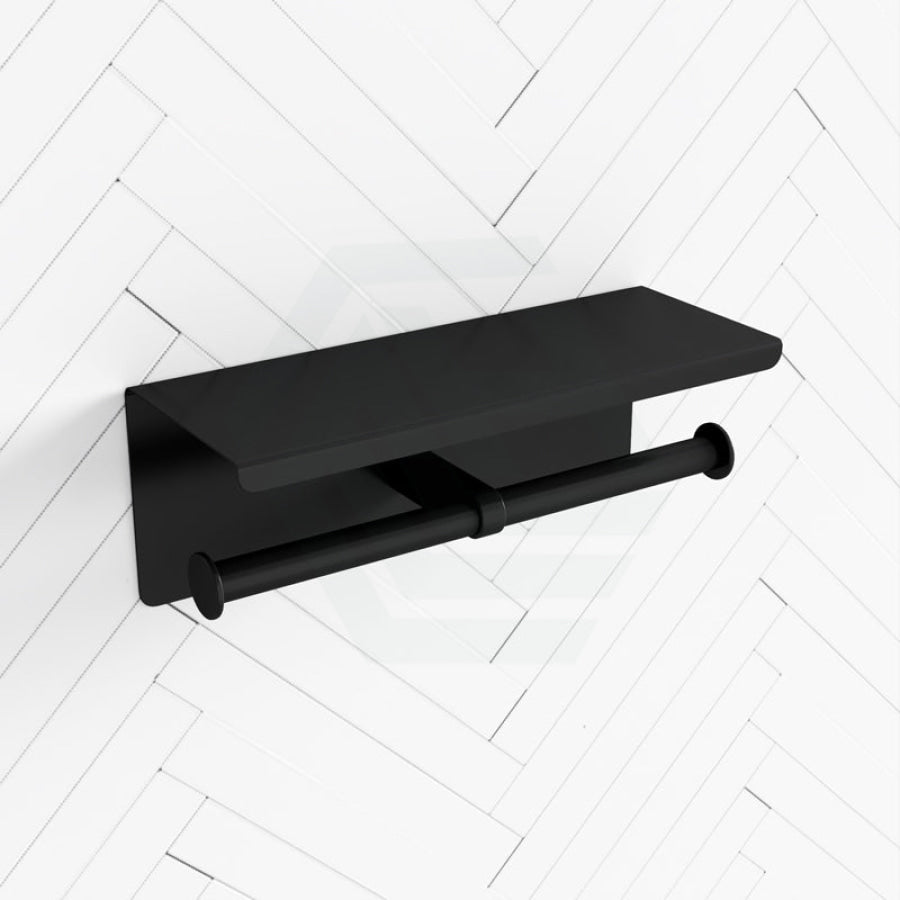 Metlam Double Toilet Roll Holder with Shelf Top Designer Black