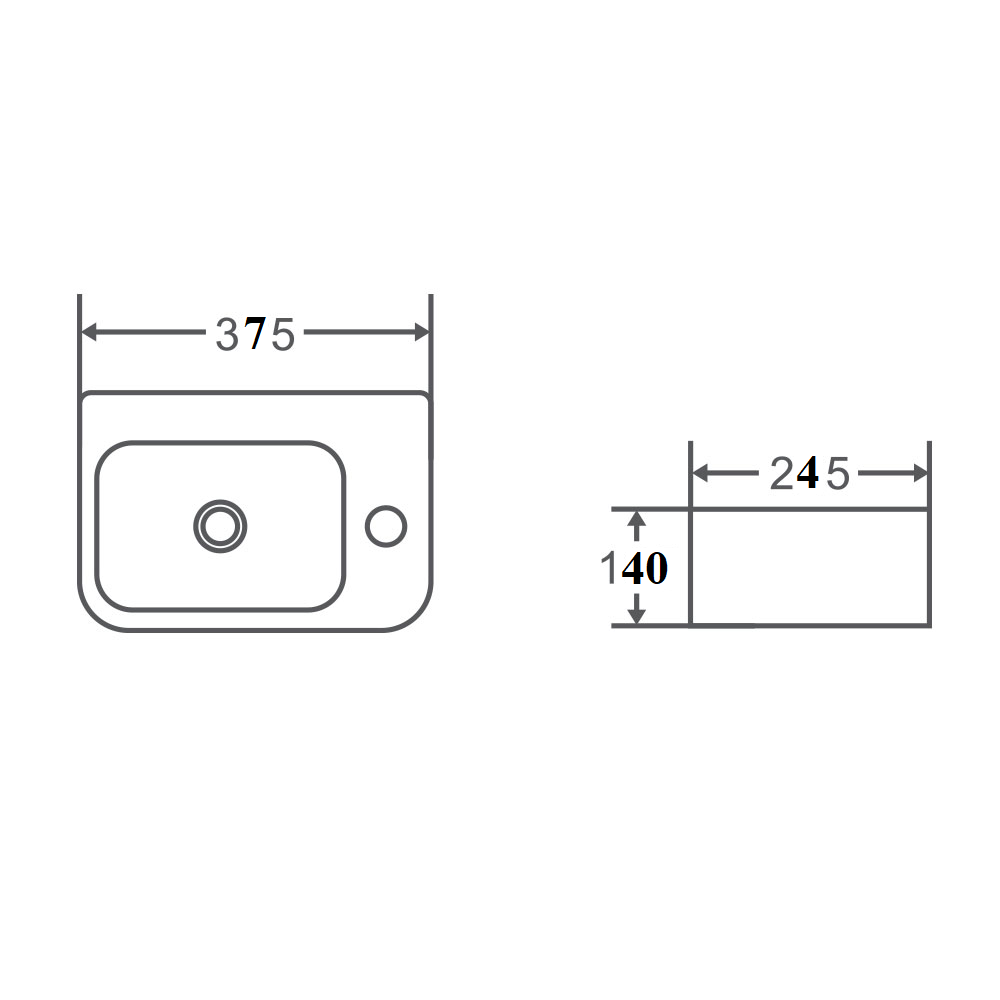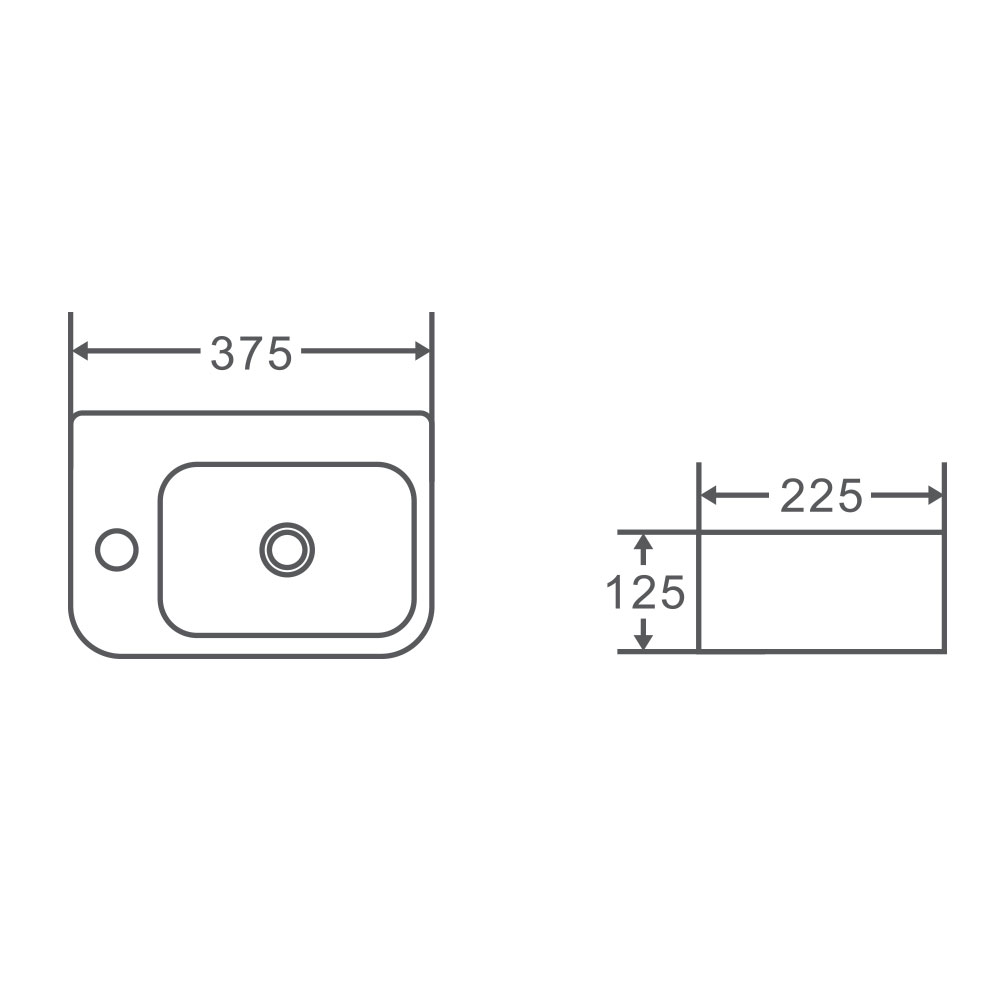 375x255x125mm Mini Rectangle Gloss White Wall Hung Ceramic Basin Left or Right Tap Hole Available