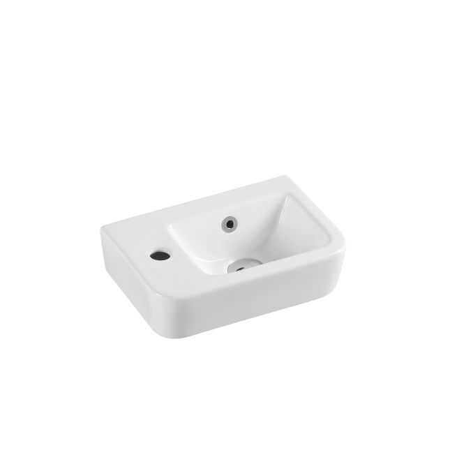 This mini rectangle wall hung ceramic basin features a high gloss white finish and a left or right tap hole option. Perfect for small bathrooms, its 375x255x125mm size can fit into tight spaces, making your bathroom more efficient. It is constructed of quality ceramic, making it robust and durable.