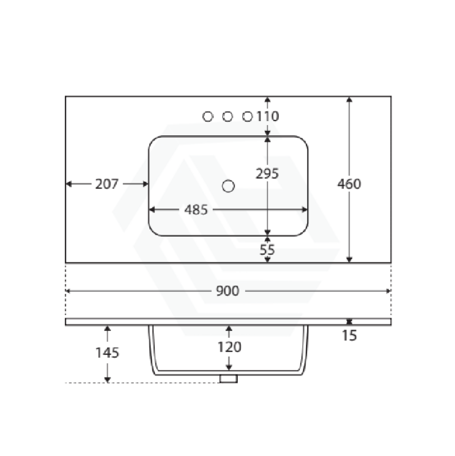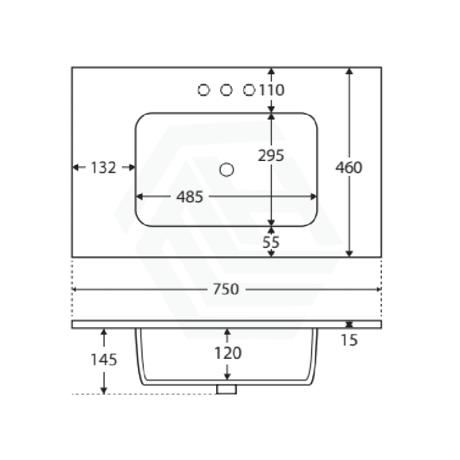 • 12 o’clock tap hole as standard (3 tap holes also available)