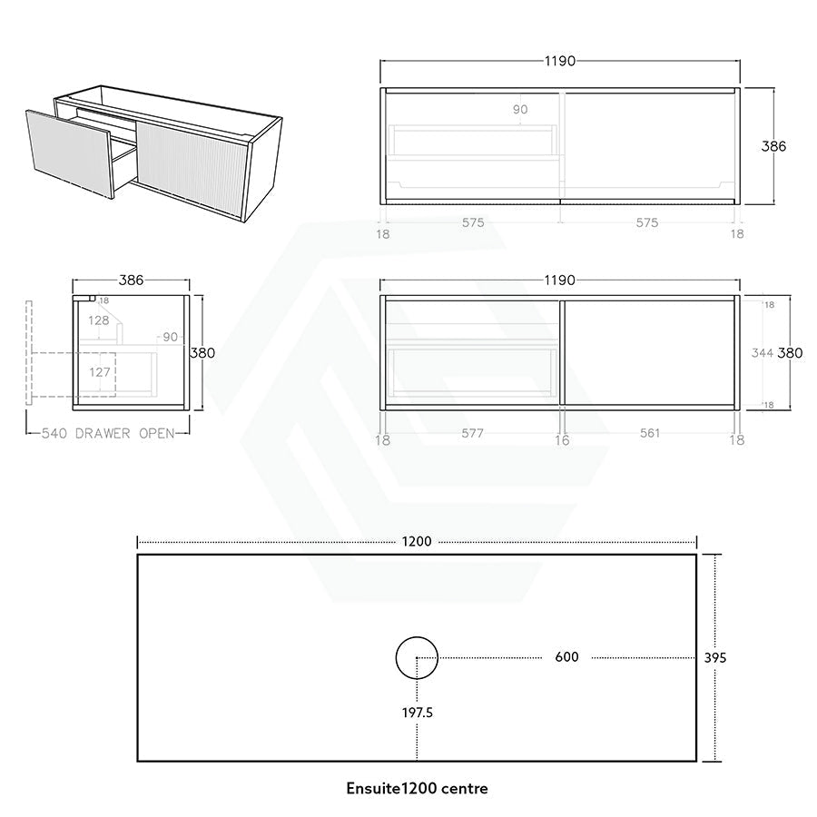 - 1200mm- 1190*386*380mm, coming with 1-2 waste holes