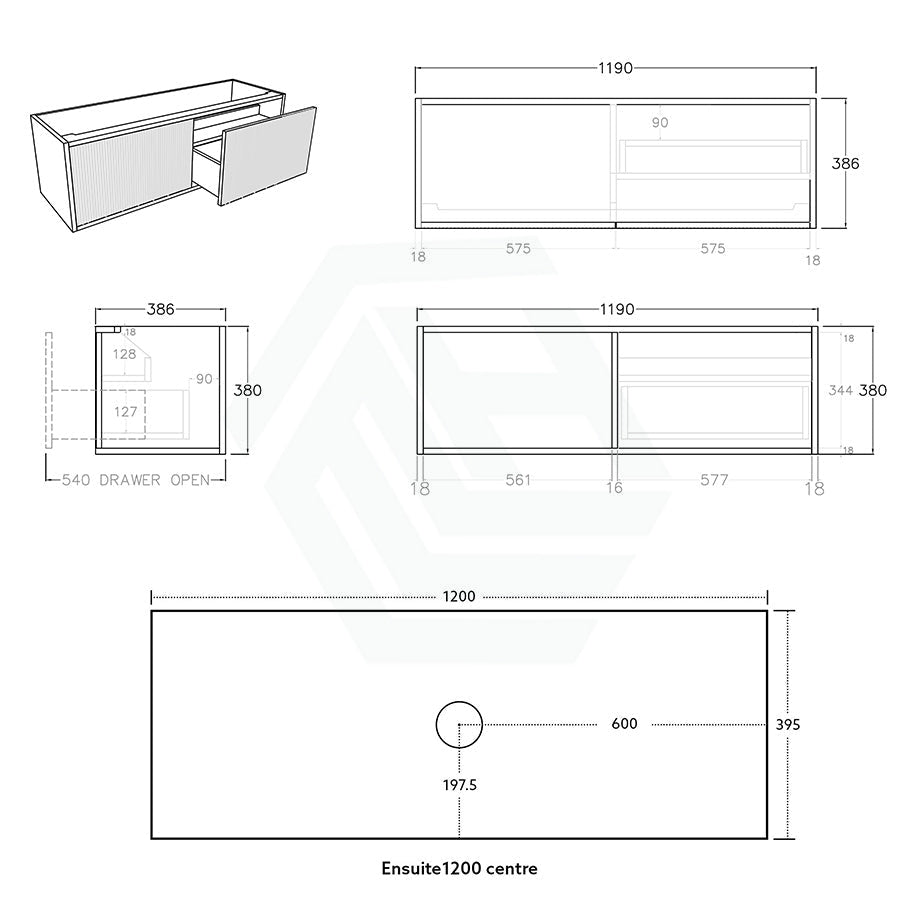 - 1200mm- 1190*386*380mm, coming with 1-2 waste holes