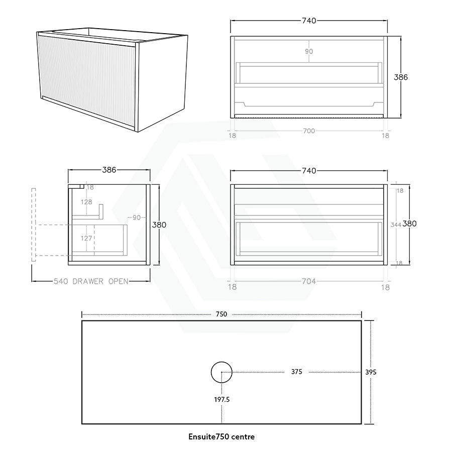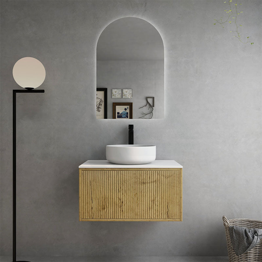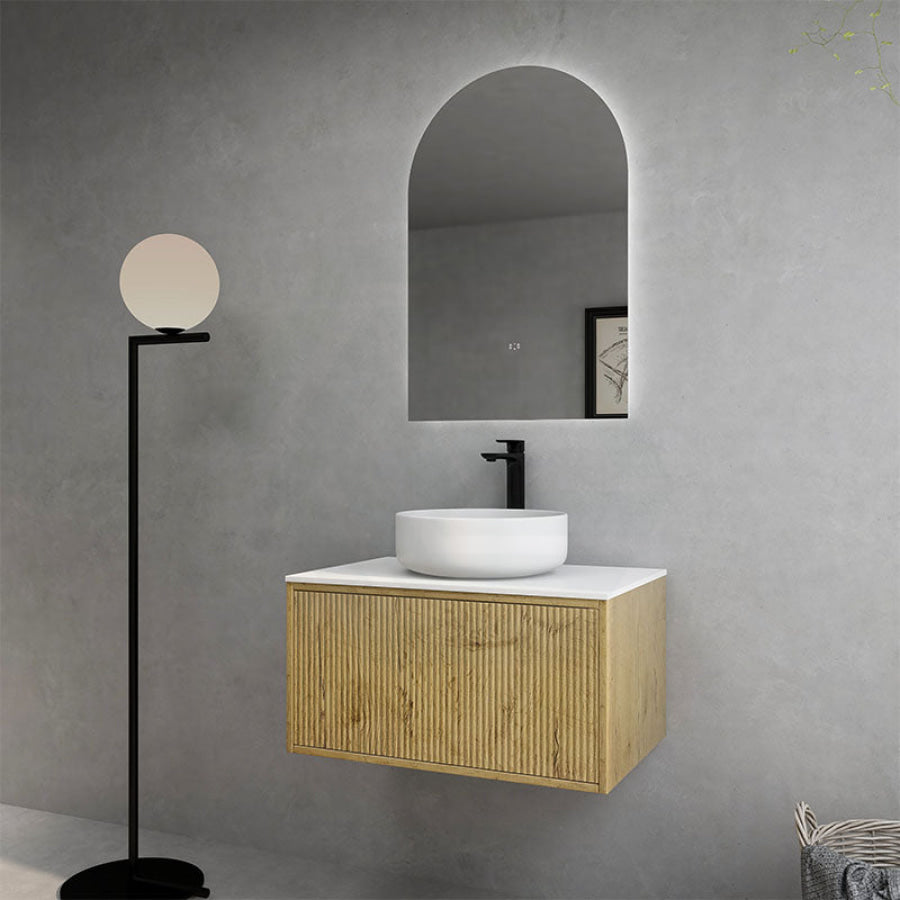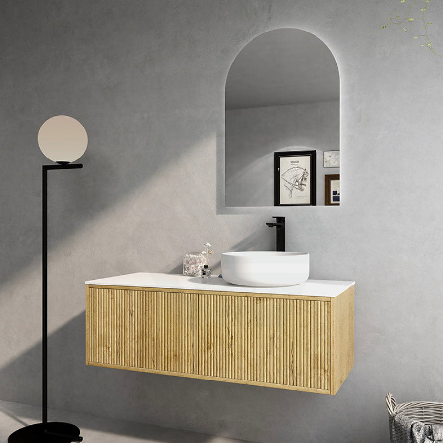 Experience luxury in your bathroom with the Bellevue wall-hung vanity cabinet. Crafted from Prime Oak Woodgrain, with a thermolaminated V-Groove finish, this exquisite statement piece offers both style and functionality. Push-to-open drawers and internal shelving provide ample storage space. A 40mm Box Trap & Space Saver Kit is included to suit any water outlet. Available in five sizes from 600-1500mm to match any space. Mix and match with a variety of stone tops for a custom look.