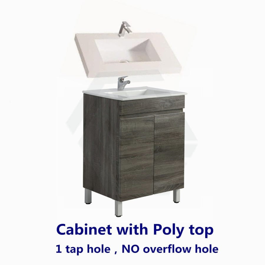 Elevate your bathroom with our 600/700mm NARROW Berge Freestanding Vanity! Our dark grey wood grain PVC filmed cabinet exudes elegance, while the ceramic/poly top adds a touch of luxury. With its slim design and sturdy legs, this vanity is perfect for smaller spaces. Upgrade your bathroom today!