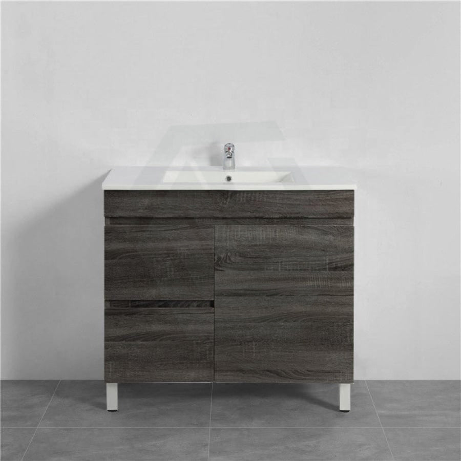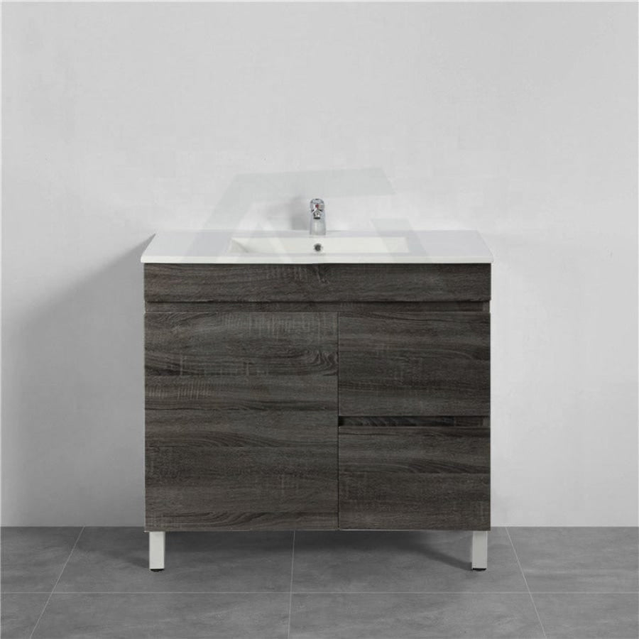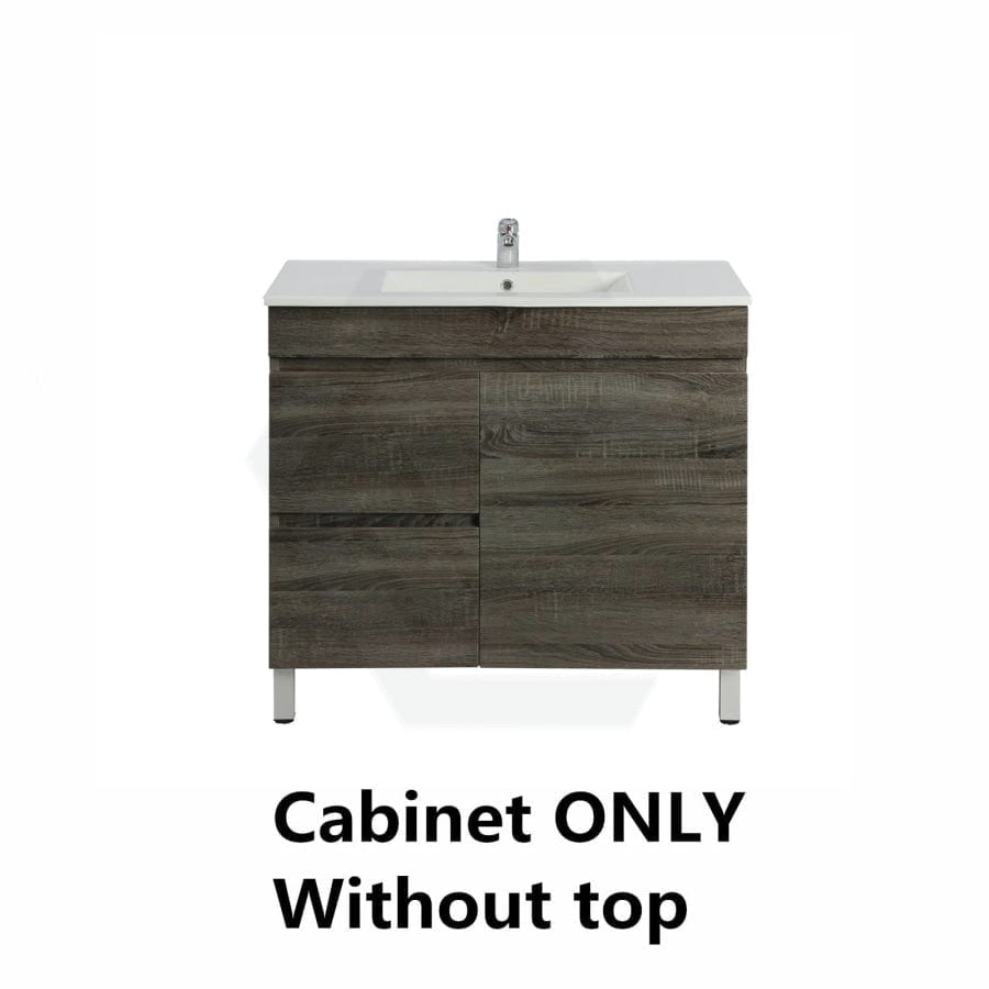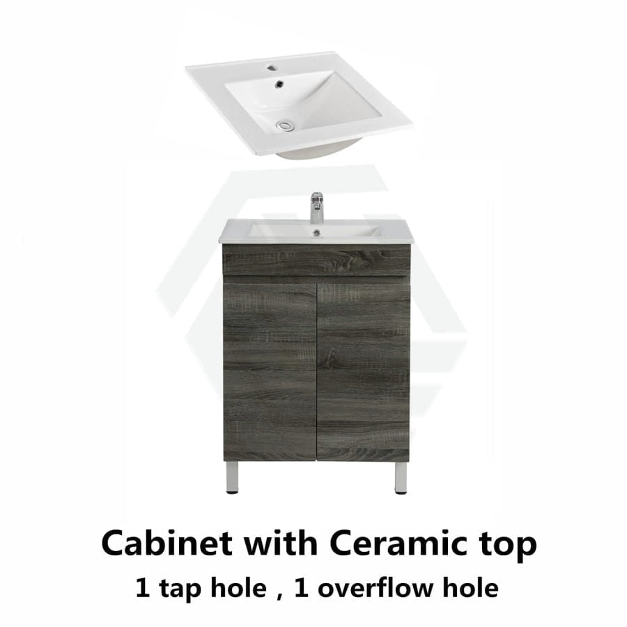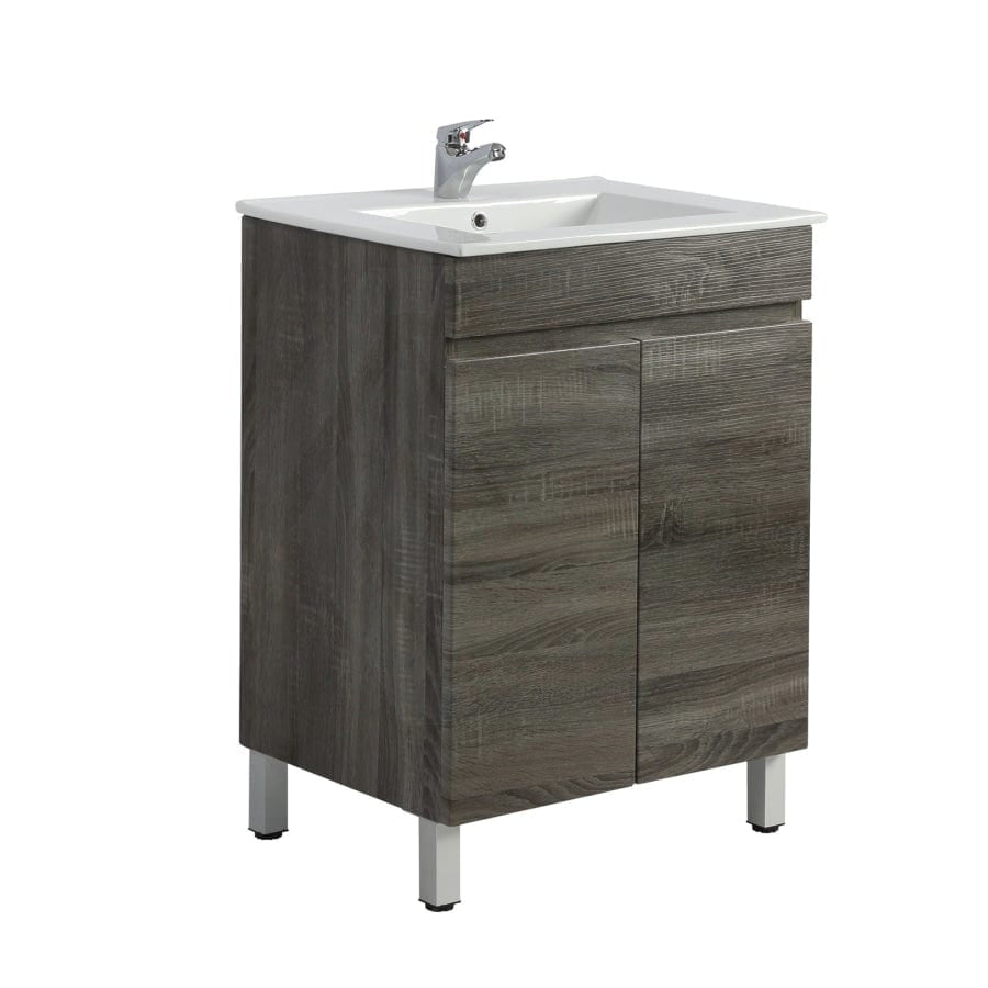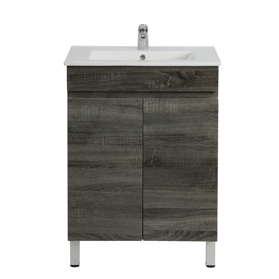 600/700mm NARROW Berge Freestanding Vanity with Legs Dark Grey Wood Grain PVC Filmed Cabinet ONLY & Ceramic / Poly Top Available