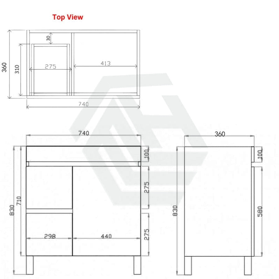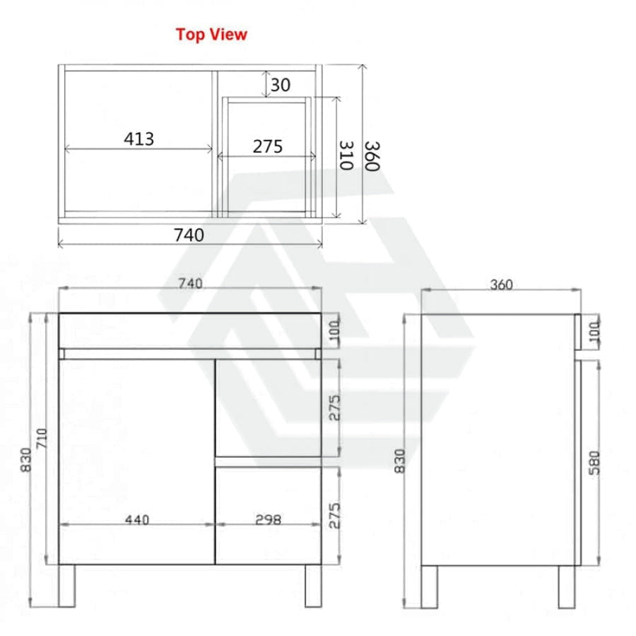 740x350x830mm Vanity (With double drawers and one door)