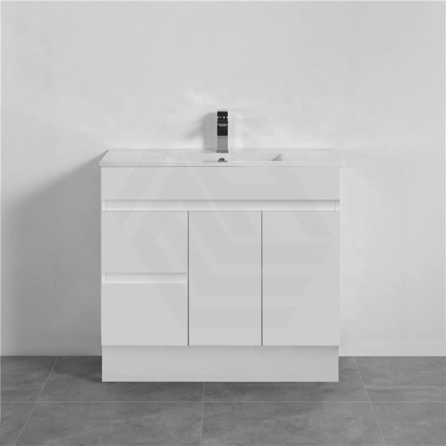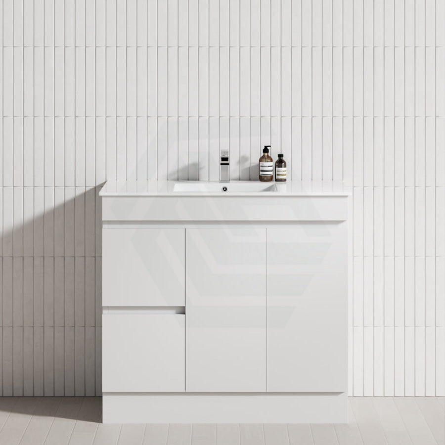 600-900mm Narrow Premium Bathroom Freestanding Kickboard Vanity White PVC Polyurethane Cabinet ONLY & Ceramic Top Available