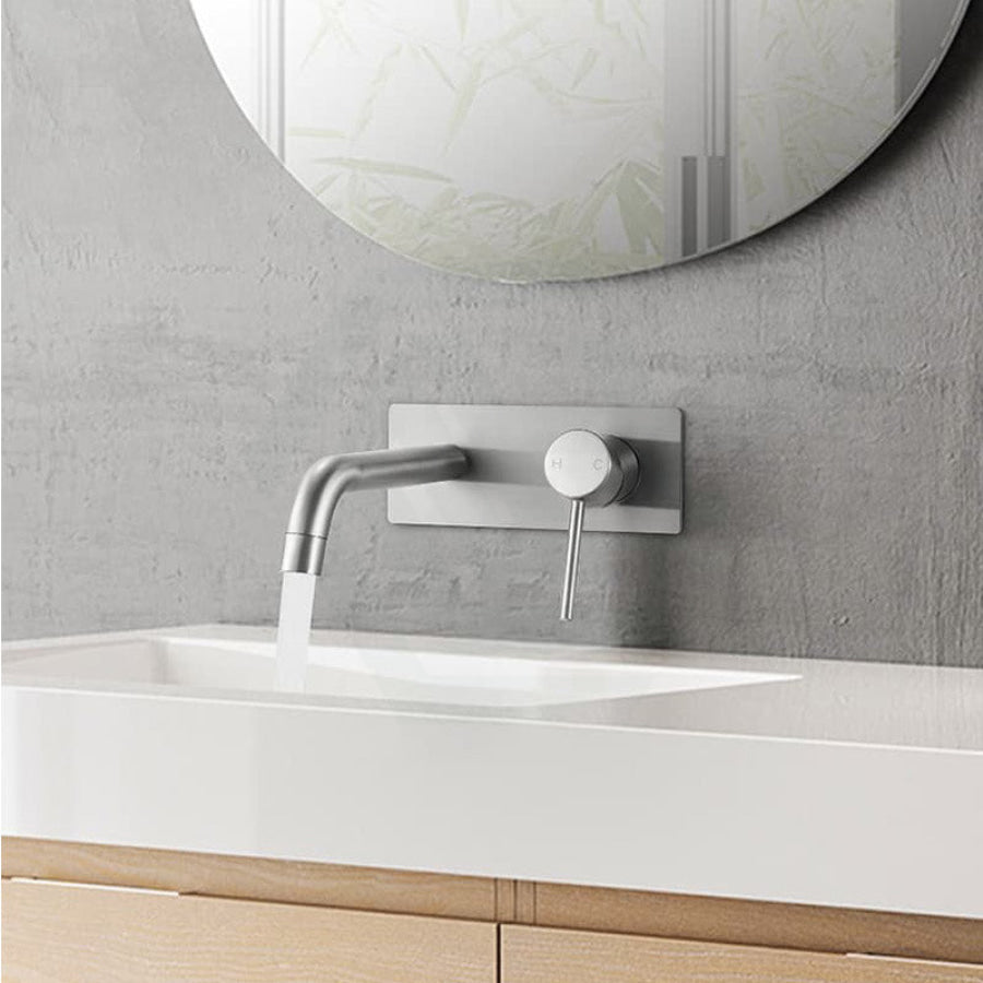 The Norico Round Brushed Nickel Wall Mixer combines durability and style, crafted from solid brass for long-lasting performance. Its brushed nickel finish resists corrosion and tarnishing, maintaining a sleek look over time. Designed for bath or basin use, this mixer features a smooth spout that ensures reliable water flow control, enhancing both function and aesthetics in your bathroom. Ideal for those seeking a robust, professional-grade fixture with a minimalist design.