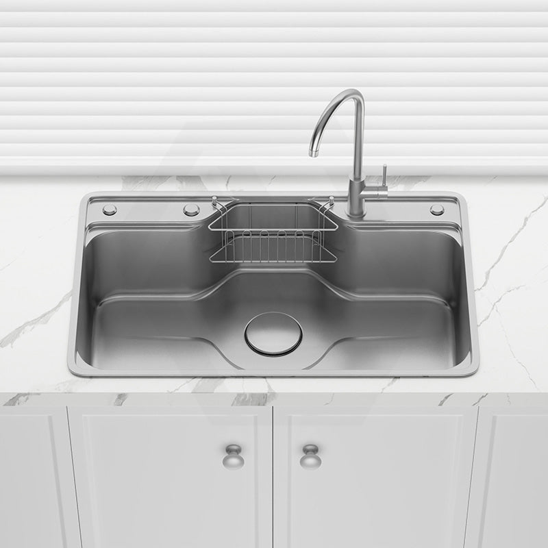 Yasumi 802x503x220mm Japanese Style Single Bowl Kitchen Sink Top/Flush/Undermount 1mm Thick Stainless Steel