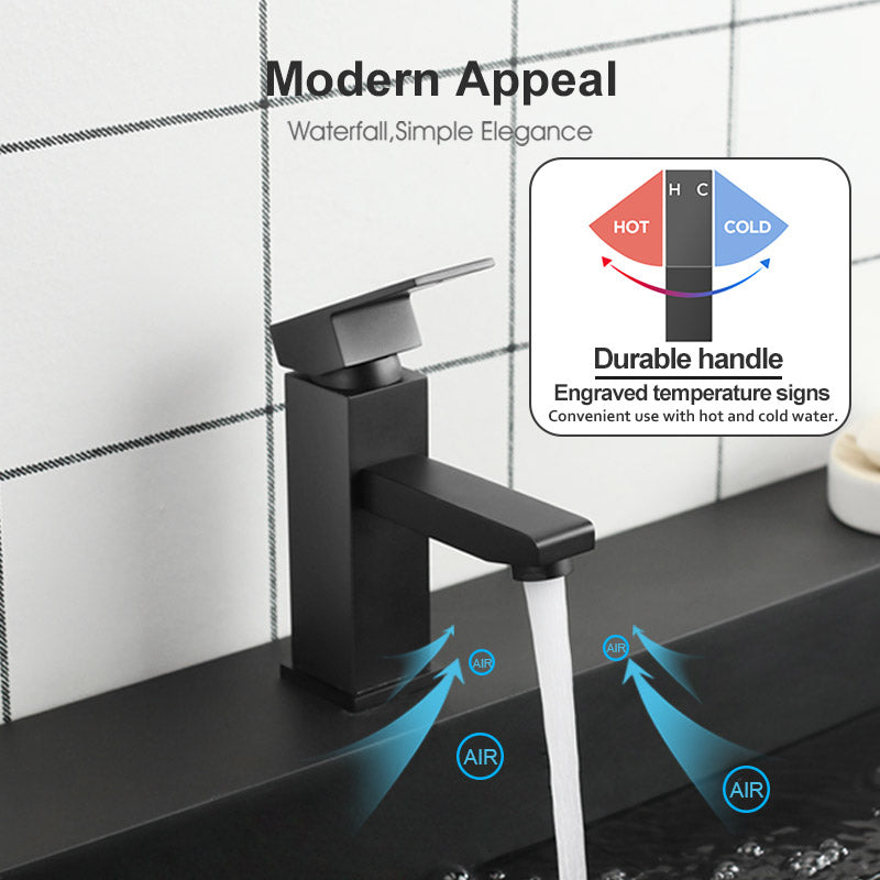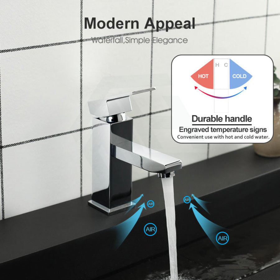 Introducing the Ottimo Solid Brass Square Basin Mixer Tap Vanity Tap in a variety of colors. Perfect for any modern bathroom, this tap is made of high-quality brass for long-lasting durability. Upgrade your vanity with this stylish and functional piece.