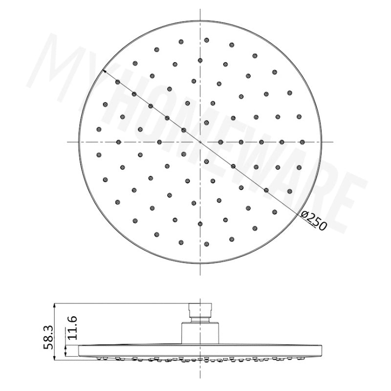 | Main Product | 1 x Otus 250mm Round Plastic Shower Head |