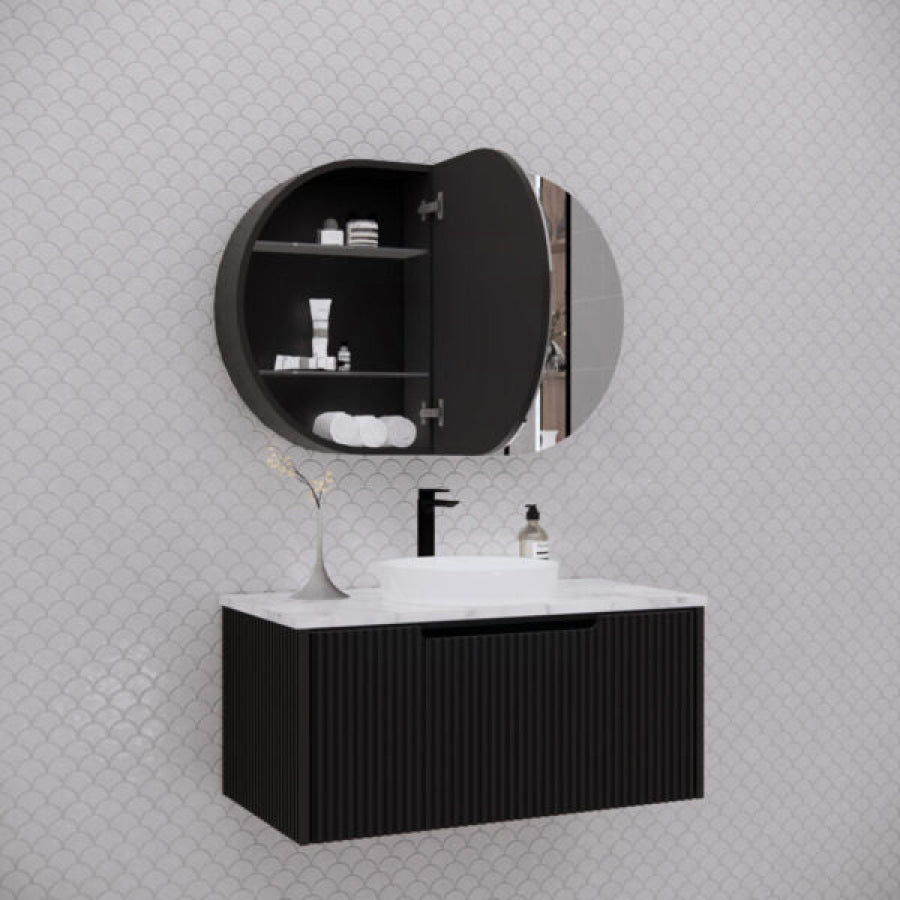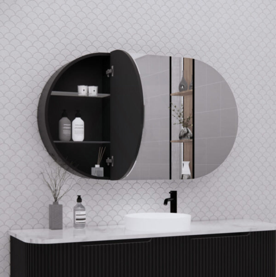 Available in three sizes—450mm, 870mm, and 1200mm—this oval pencil edge mirror shaving cabinet is designed to fit your bathroom perfectly. Wall-hung for easy installation, it offers a sleek mirrored surface and practical storage to keep your essentials organized. Choose from various colours to match your style and create a tidy, functional space that supports your daily grooming routine.