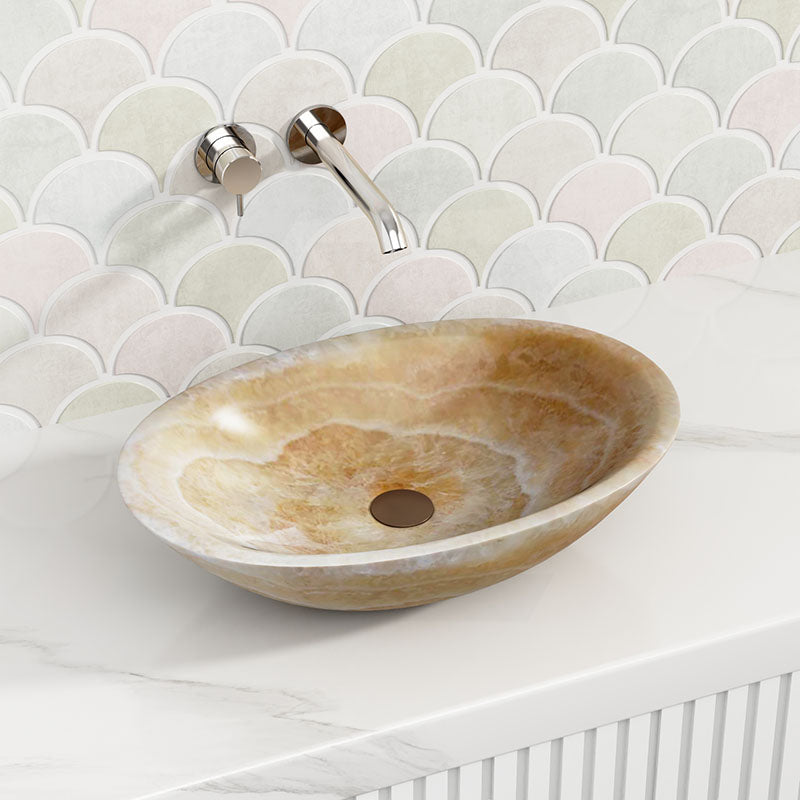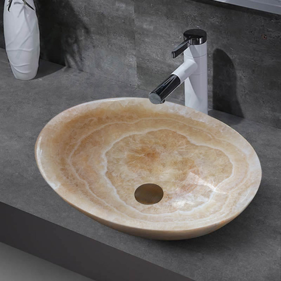 The 480x320x140mm Above Counter Stone Basin Oval Shape Yellow Onyx Surface Bathroom Wash Basin Antique Vintage would give a high-quality and elegant addition to any bathroom.