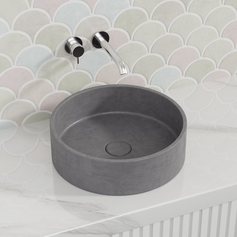 390x390x120mm Round Above Counter Concrete Basin French Grey Pop Up Waste Included