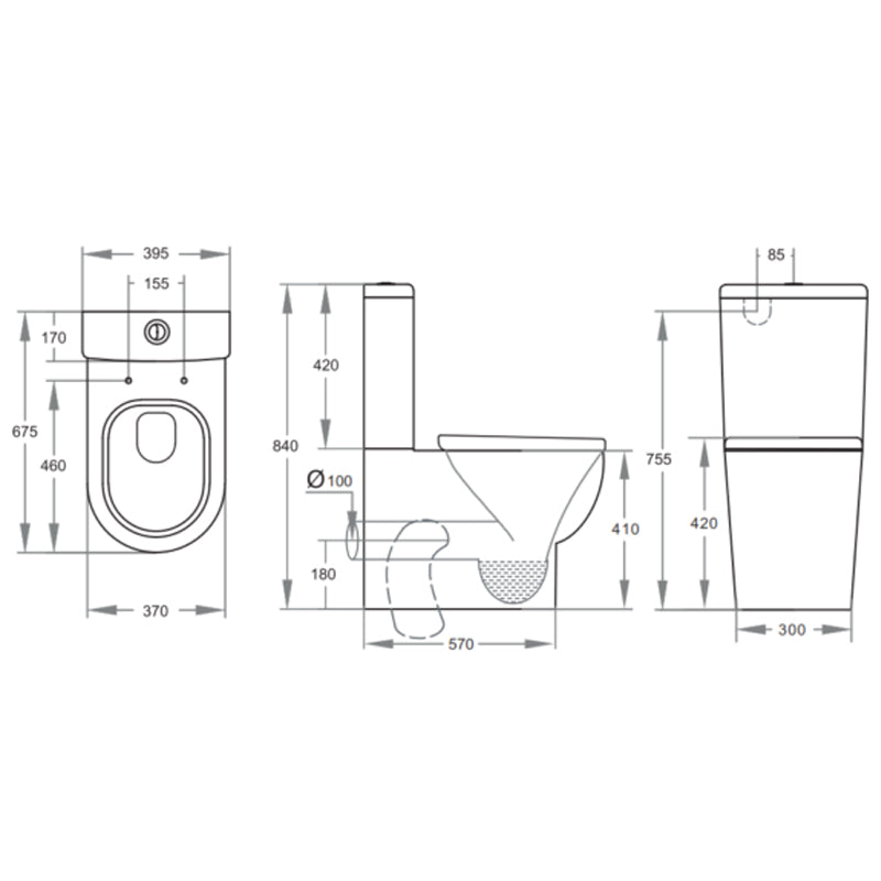 675x395x840mm Pola Ceramic White Box Rim Back To Wall Toilet Suite Back/Left and Right Bottom Inlet