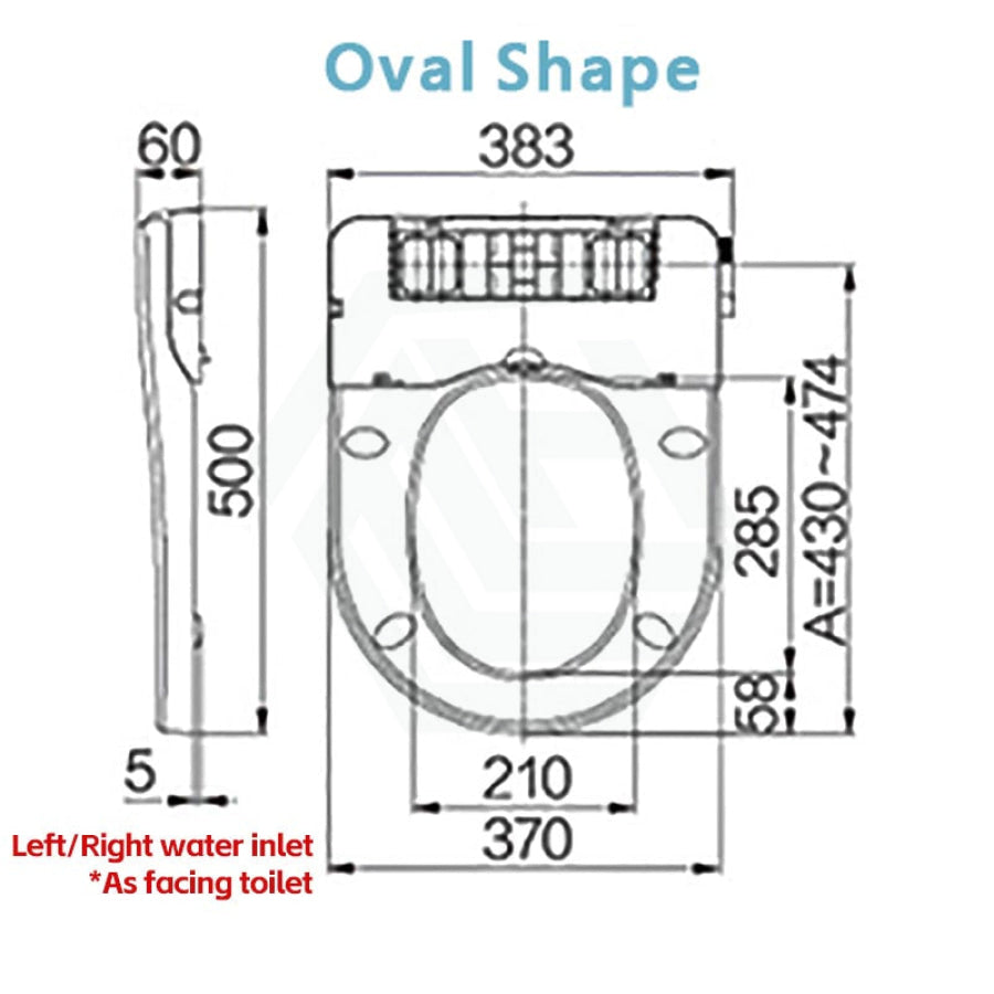 500x370x60mm Toilet Cover Seat with Posterior Wash and Self Nozzle Cleaning Left/Right Water Connection for toilet