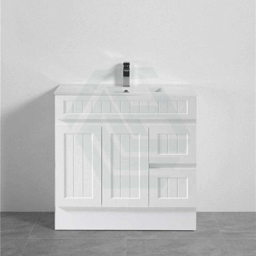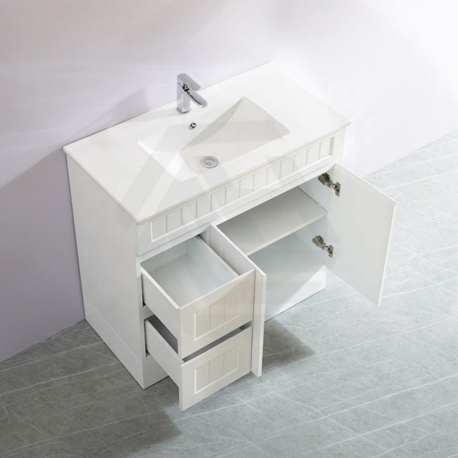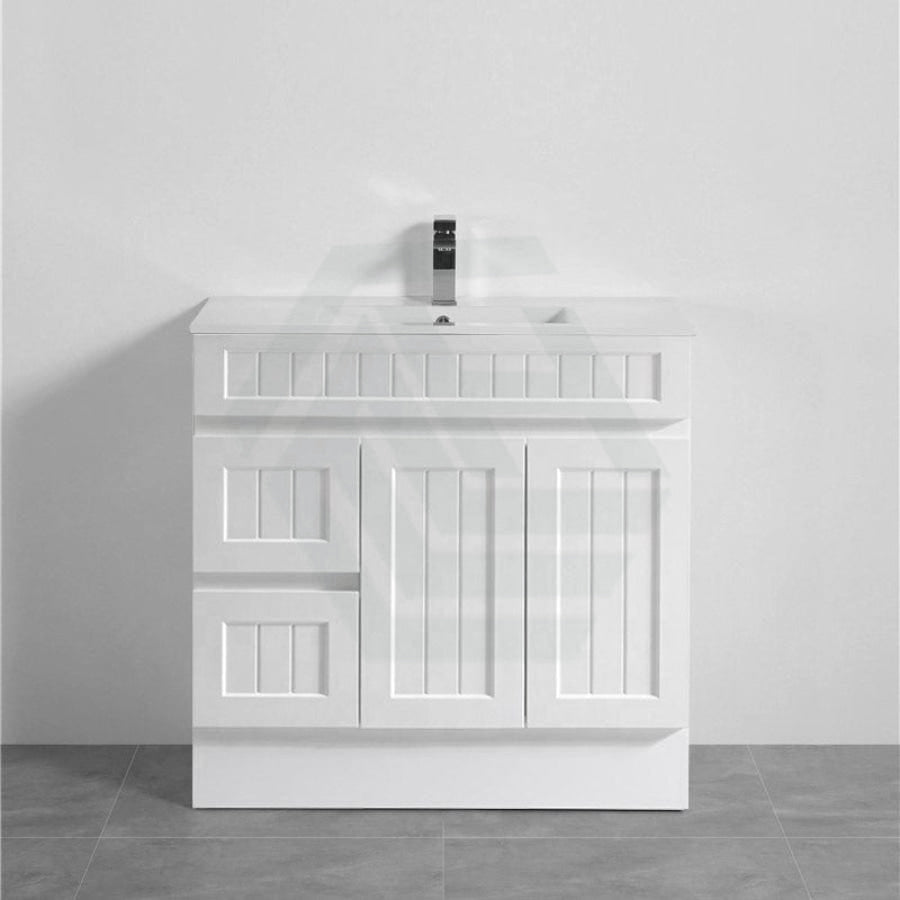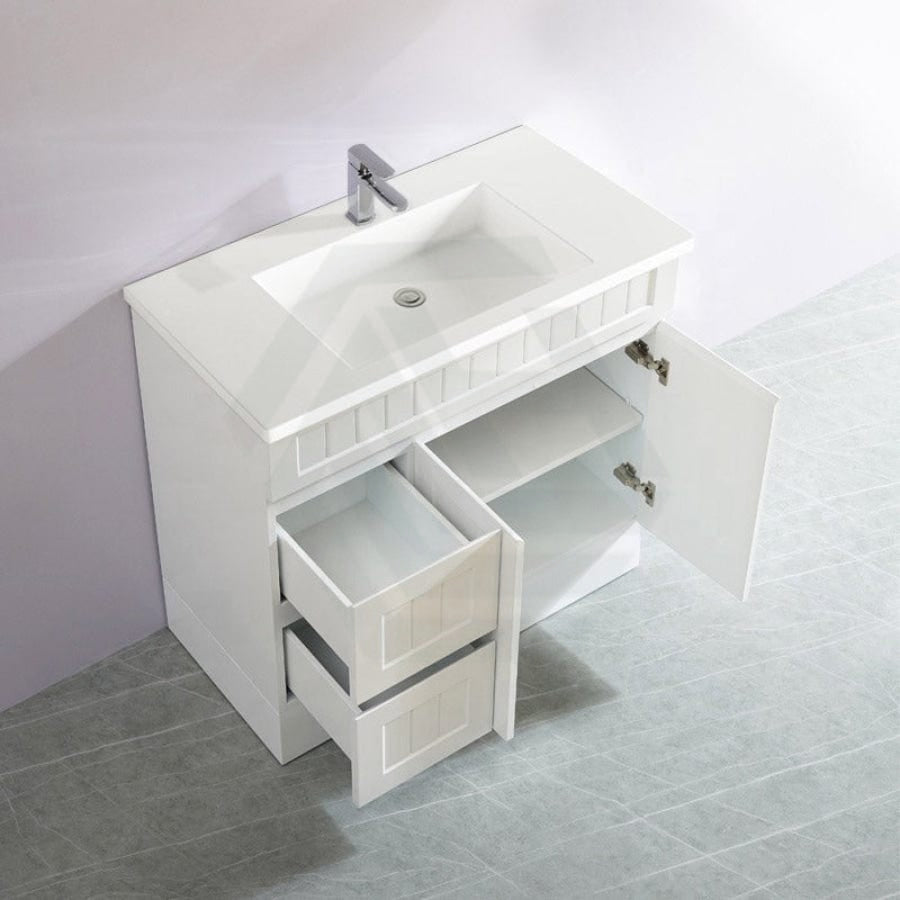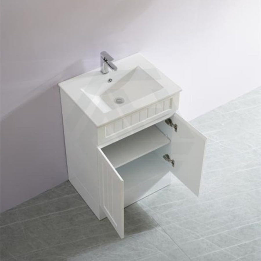 600/750/900/1200/1500mm Hampton Freestanding With Kickboard Vanity PVC Board Matt White Linear Surface