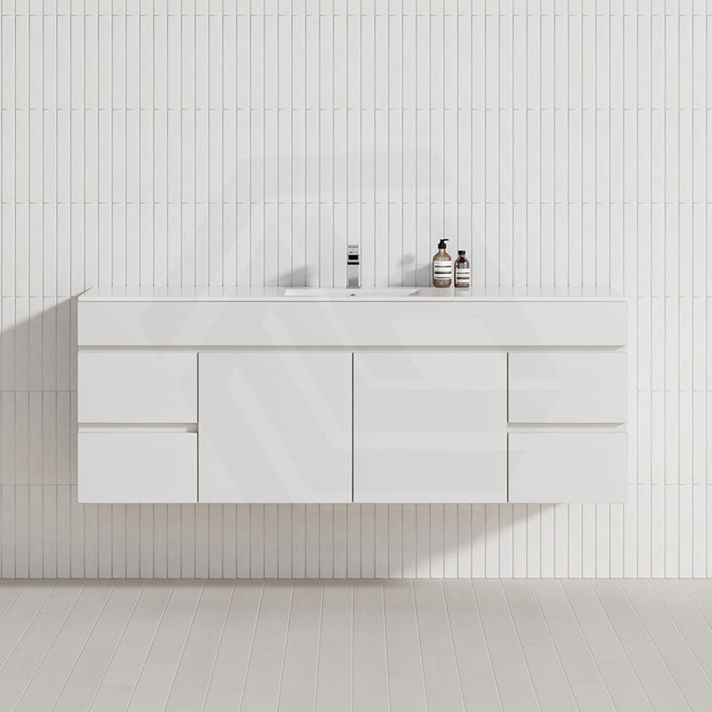 The 600/750/900/1200/1500mm Bathroom Premium Floating Vanity Wall Hung White Polyurethane PVC Cabinet ONLY & Ceramic Top Available brings comfort and function together in the bathroom, equipped with soft closing design.