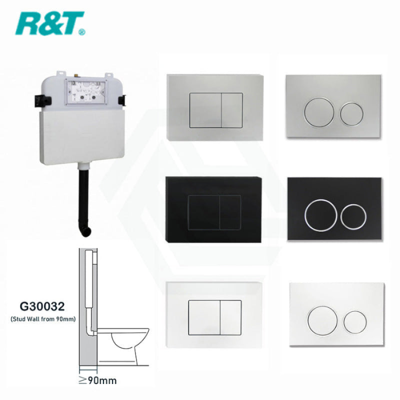 R&T 80mm Frameless Inwall Concealed Cistern for Wall Floor Toilet Pan Push Button Available