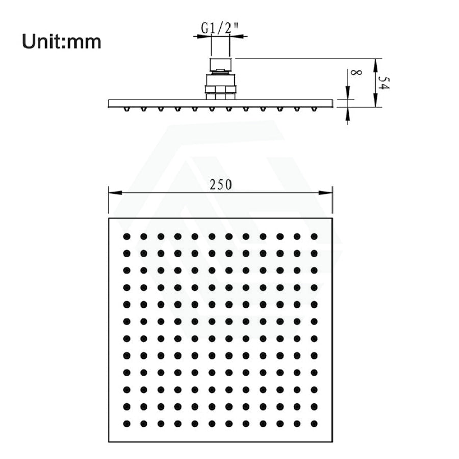 250mm 10 inch Solid Brass Square Rainfall Shower Head Variant Colour Available