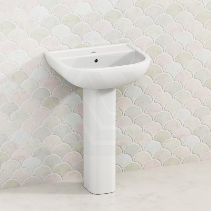 550x410x820mm RAK Compact Pedestal Basin in Gloss White Freestanding 1 Tap Hole