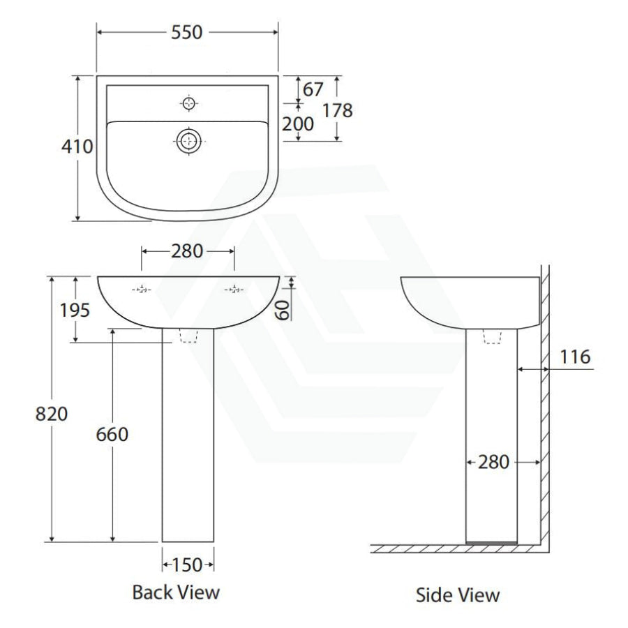 The 550x410x820 mm RAK Compact Pedestal Basin is a chic modern addition to any bathroom. Crafted from durable gloss white material, this elegant freestanding basin comes with the option for 1 tap hole, so you can customize the basin to your precise needs.