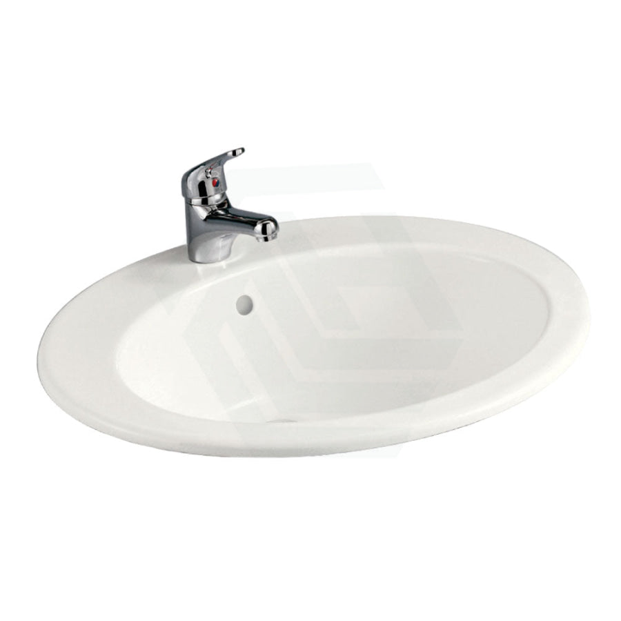 530x435x225mm RAK Jessica Ivory Fully-Inset Ceramic Basin Oval 1 or 3 Tap Holes Available