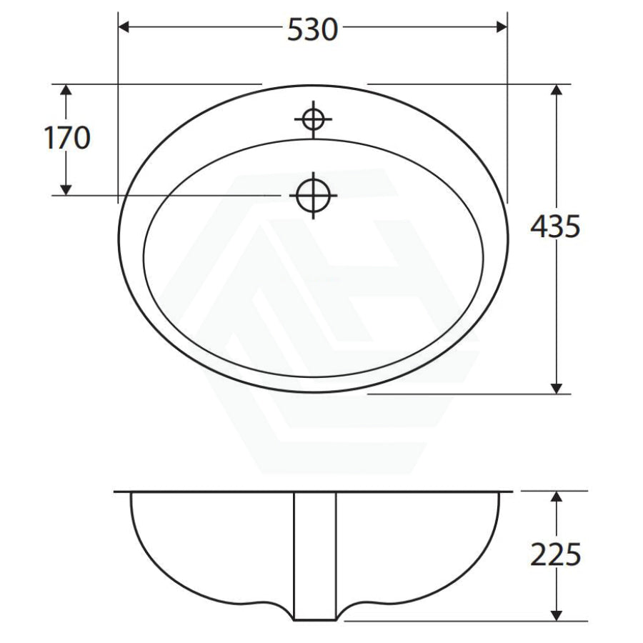Installation Note | Due to the nature of ceramic as a material, small variations in size and shape do occur. Ensure that the measurements of the purchased basin are checked physically, BEFORE cutting any counter-top. Specification drawings are a GUIDE ONLY. MyHomeware will not be held liable for any errors made by external parties when cutting counter-tops. |