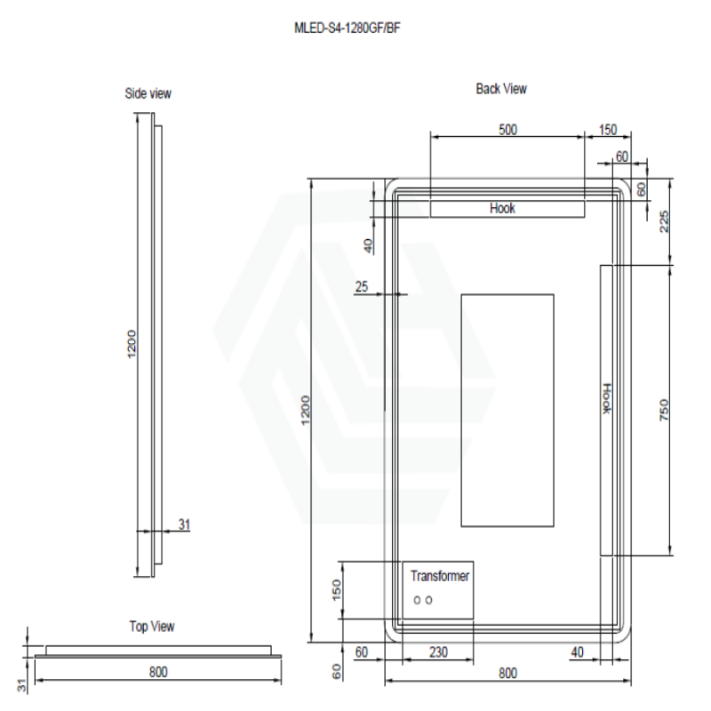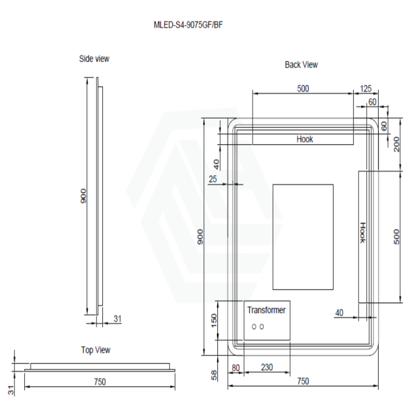 Installation: 750x900mm Mirror (Vertical/Horizontal), 800x1200mm Mirror (Vertical/Horizontal), 750x600mm (Vertical/Horizontal), 1500x800mm (Horizontal)
