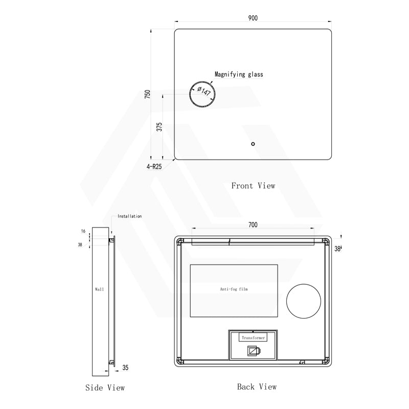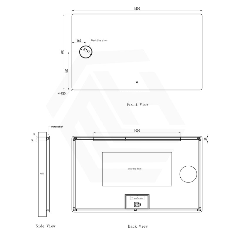 Thickness | 5mm LED Mirror, total 35mm thickness of the whole mirror |