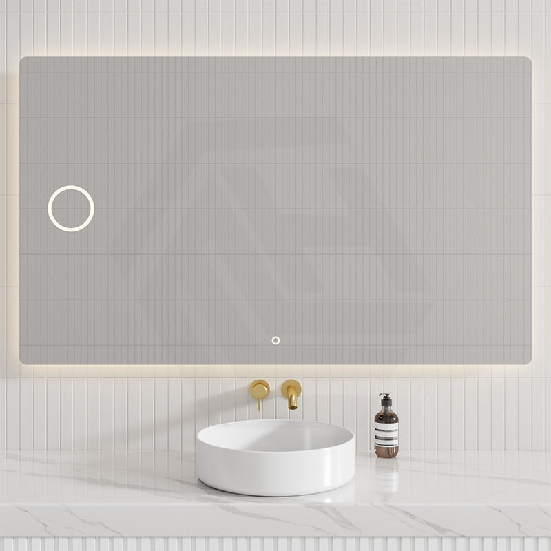750/900/1200/1500mm Rectangle LED Mirror with Magnifier Touch Sensor Switch 3 Colours Lighting Acrylic Backlit Horizontal Installation